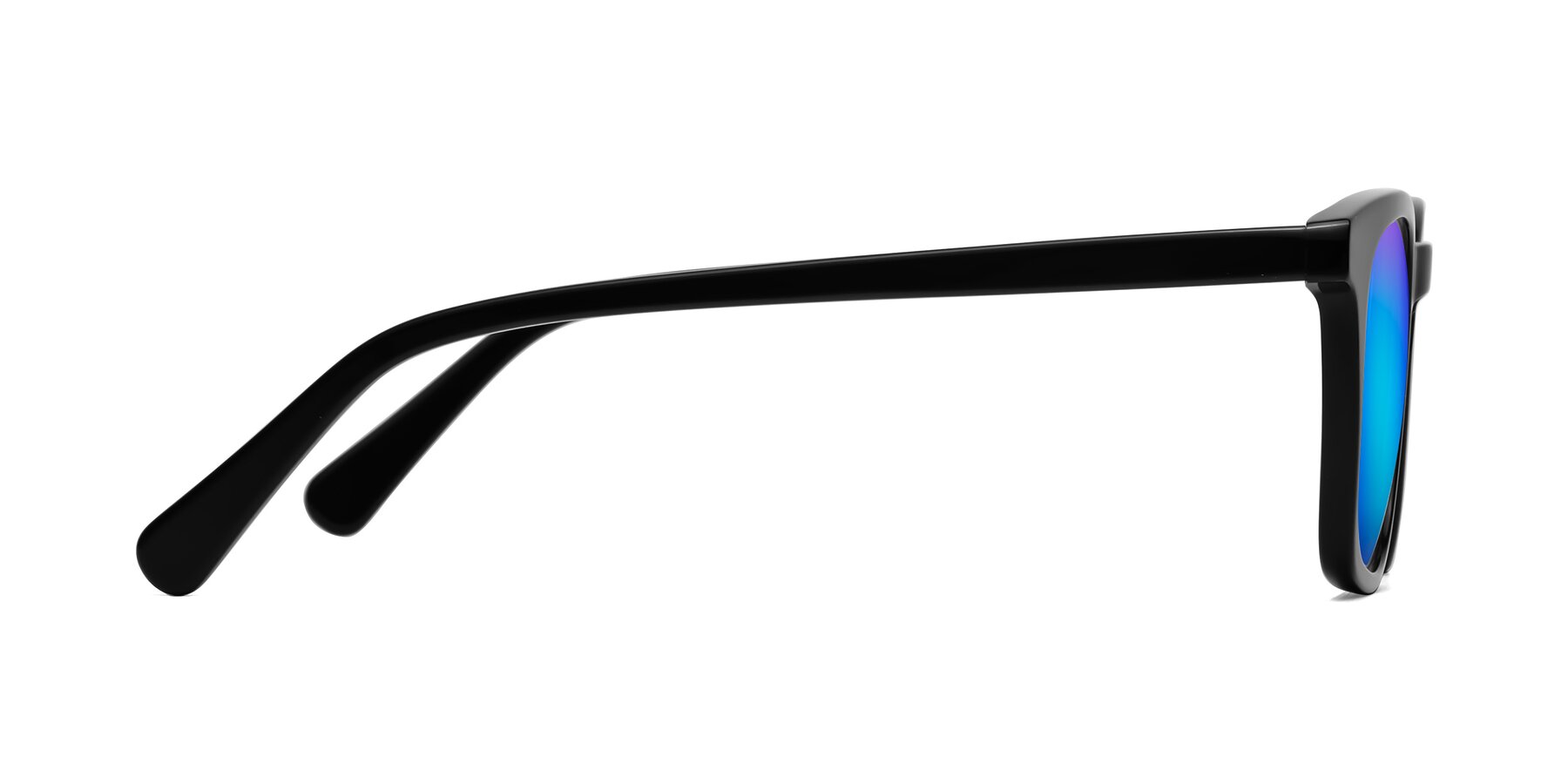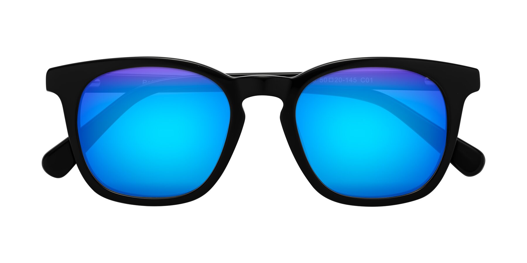 Black Keyhole Bridge Spring Hinges Trapezoid Mirrored Sunglasses with Blue Sunwear Lenses