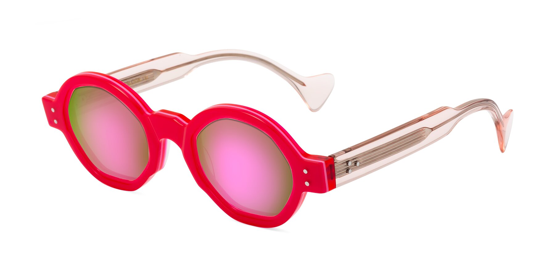 Neon Red Retro-Vintage Designer Round Mirrored Sunglasses with Pink Sunwear Lenses