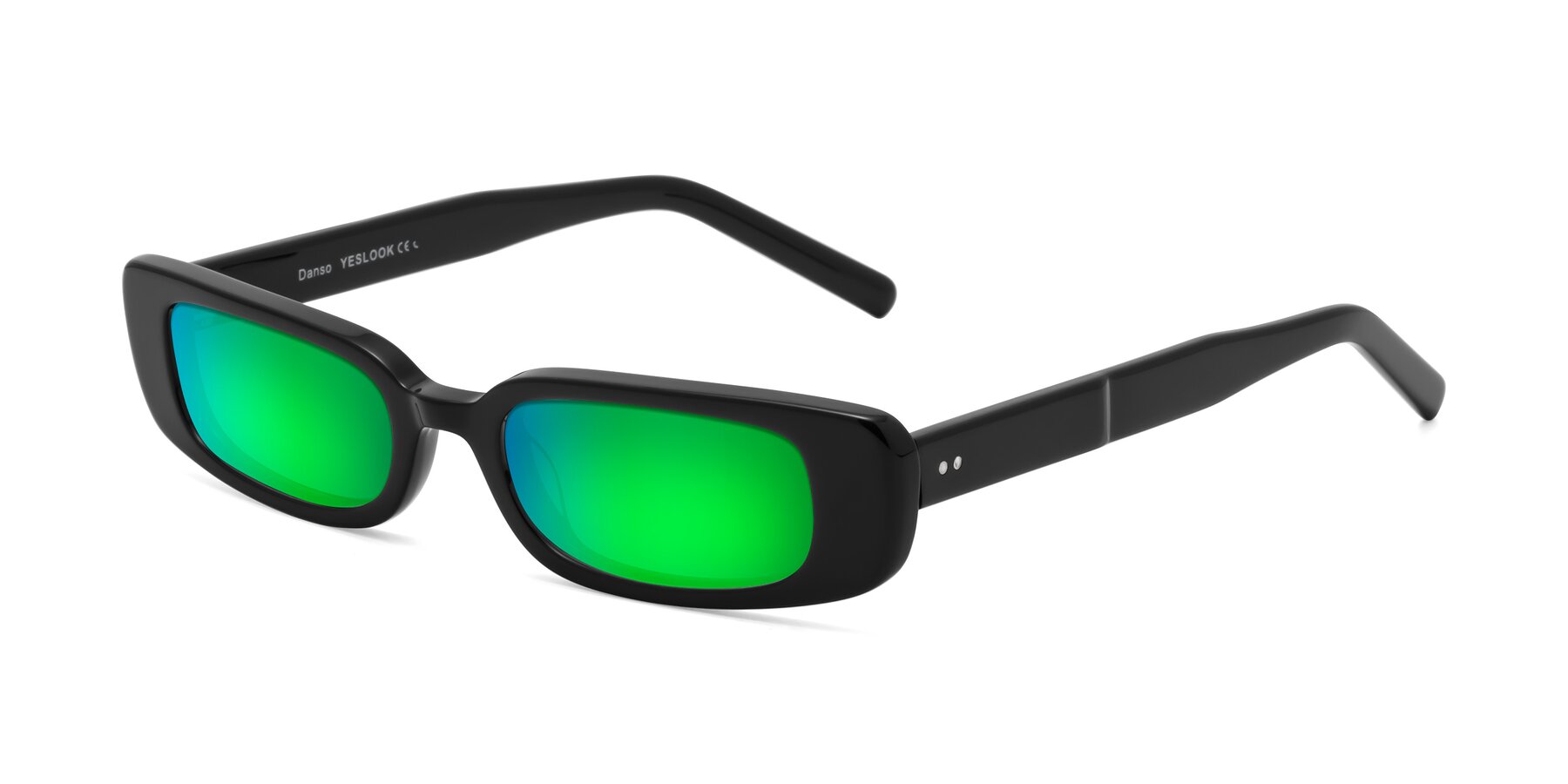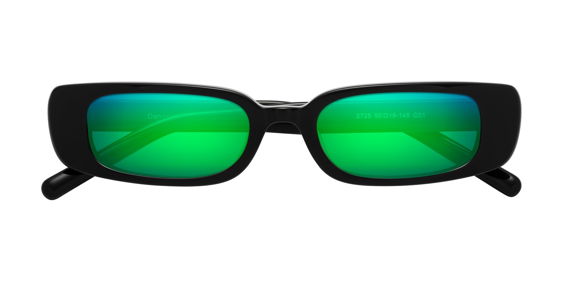Black Geek-Chic Acetate Rectangle Mirrored Sunglasses with Green Sunwear Lenses
