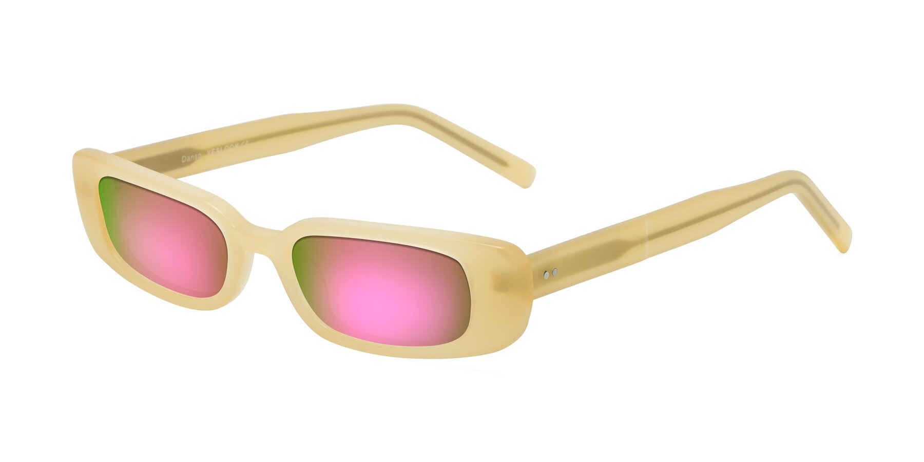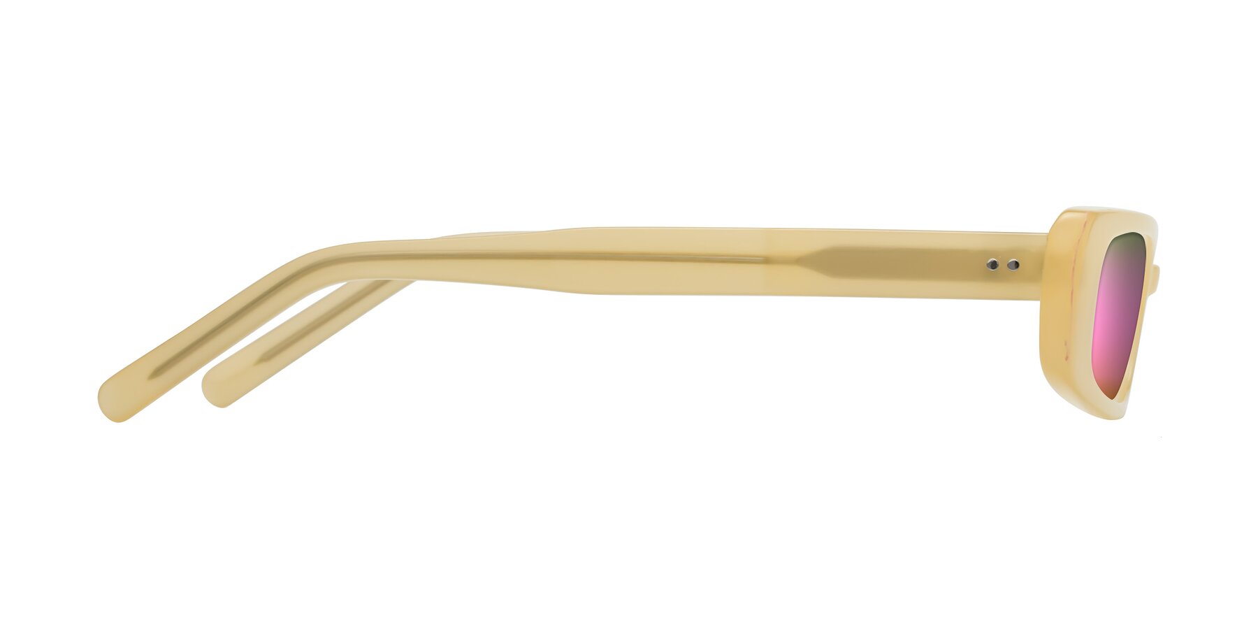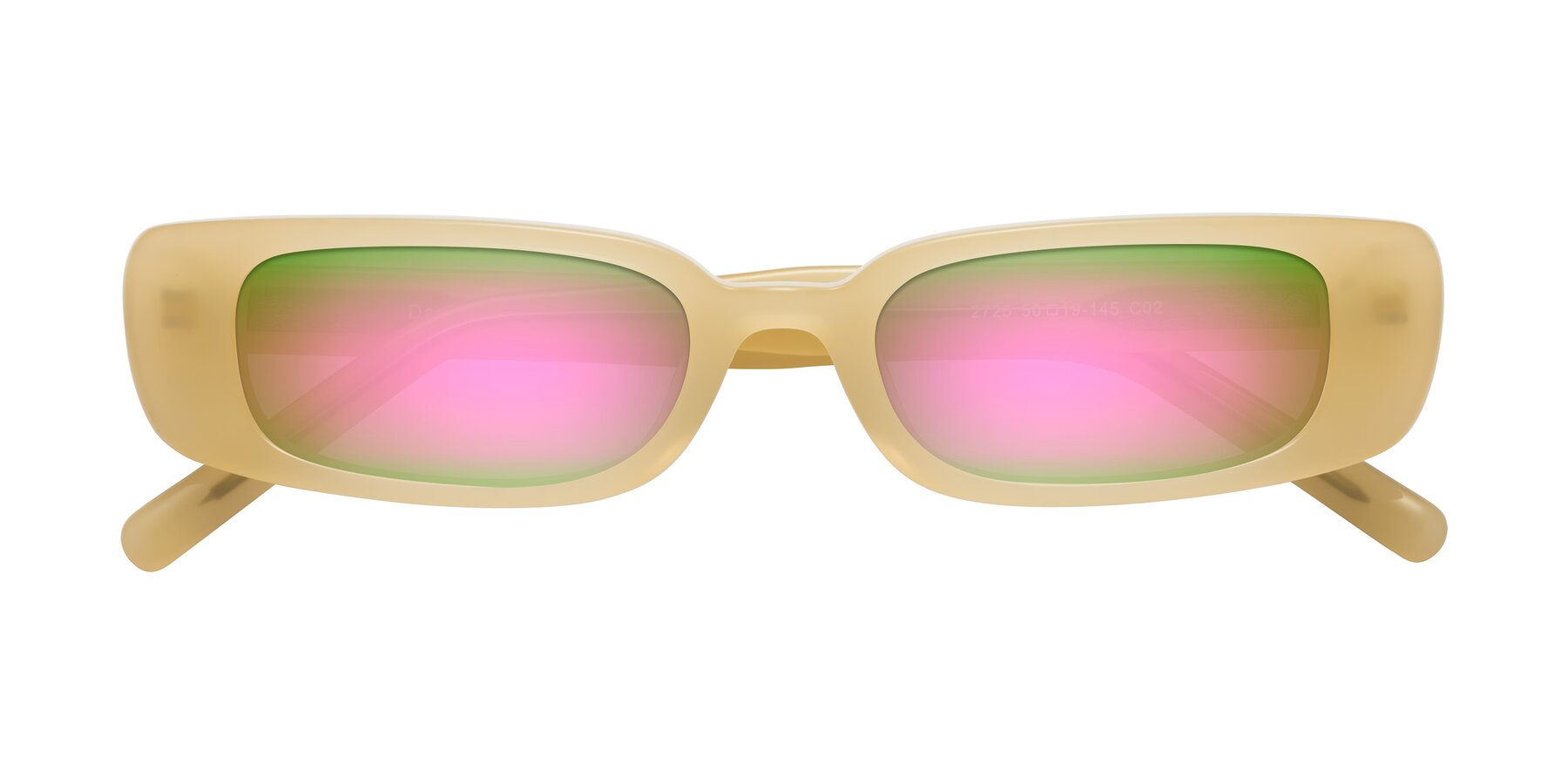 Pastel Beige Geek-Chic Acetate Rectangle Mirrored Sunglasses with Pink Sunwear Lenses