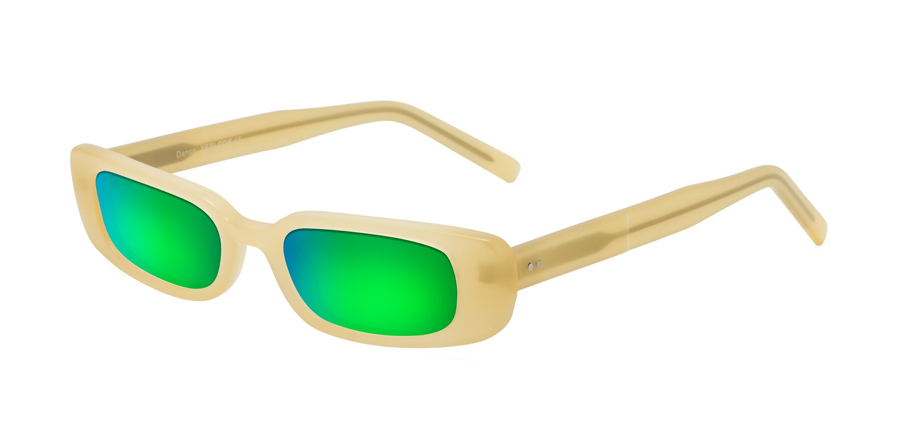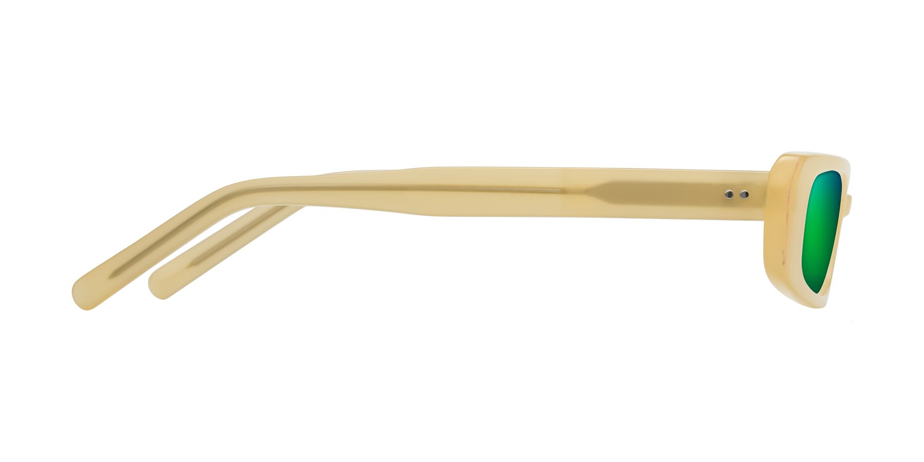 Pastel Beige Geek-Chic Acetate Rectangle Mirrored Sunglasses with Green Sunwear Lenses
