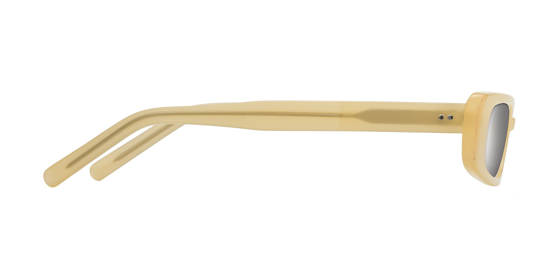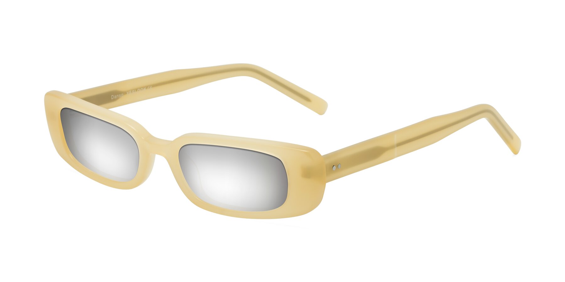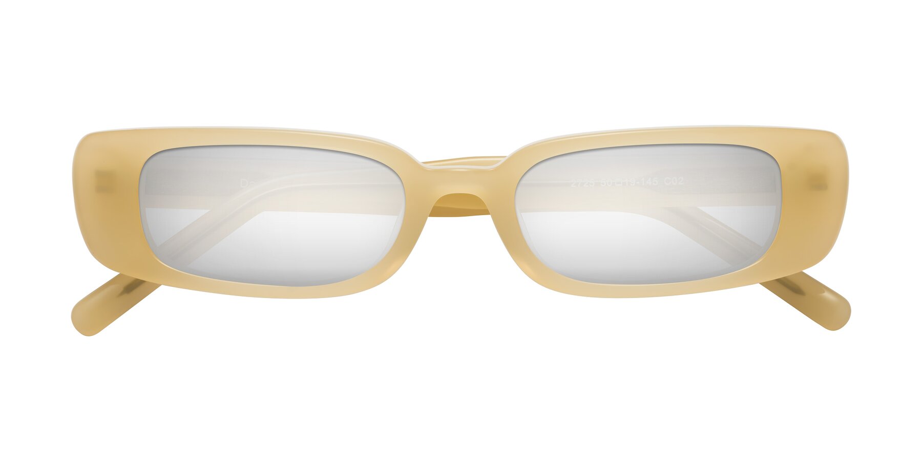 Pastel Beige Geek-Chic Acetate Rectangle Mirrored Sunglasses with Silver Sunwear Lenses