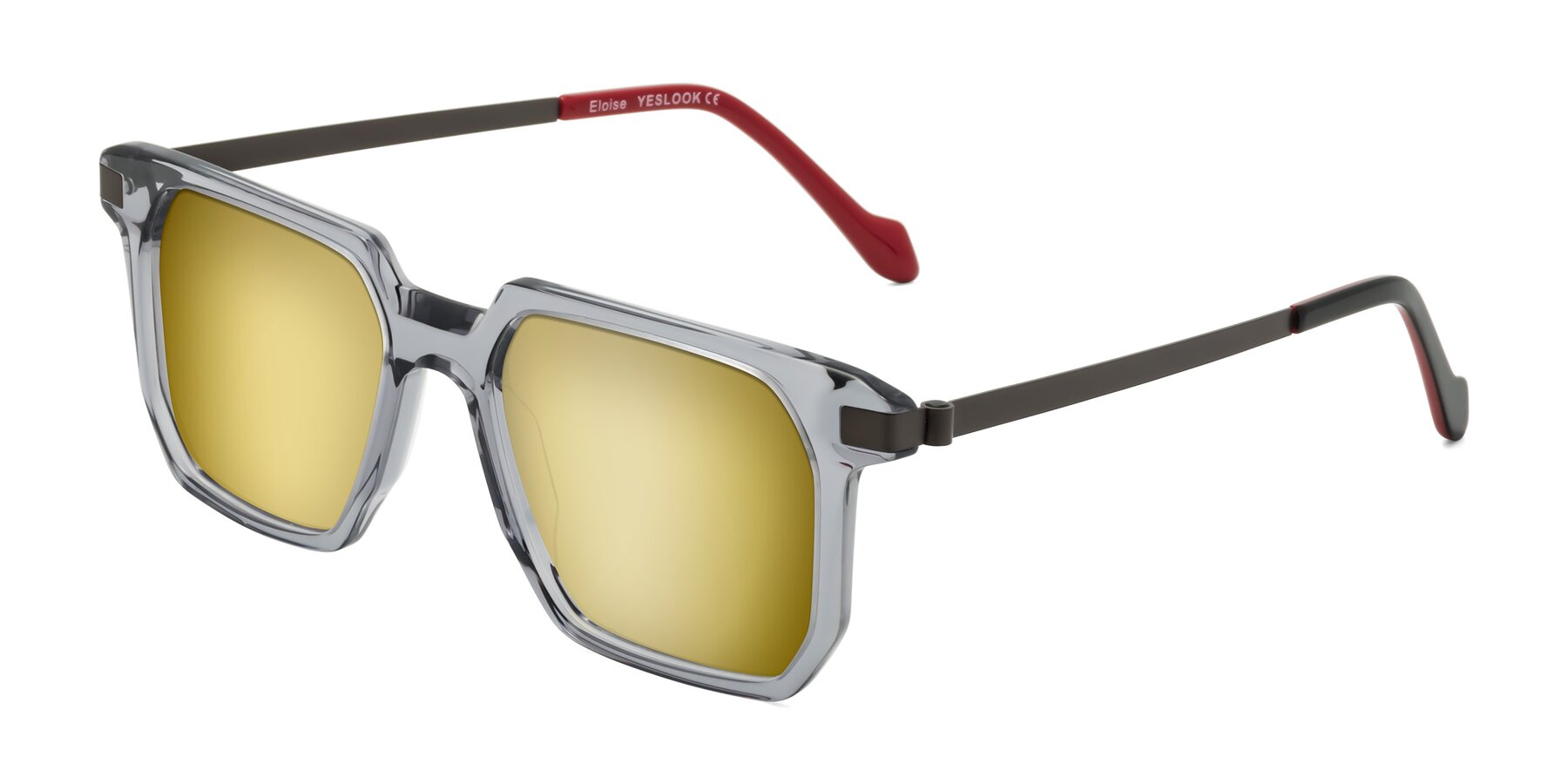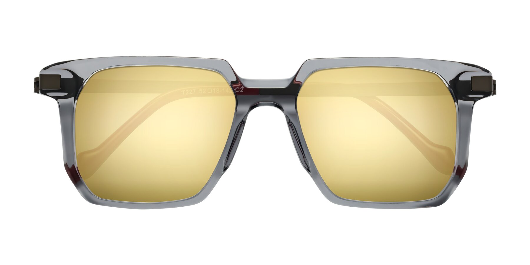 Transparent Gray Mixed Lightweight Square Mirrored Sunglasses with Gold Sunwear Lenses