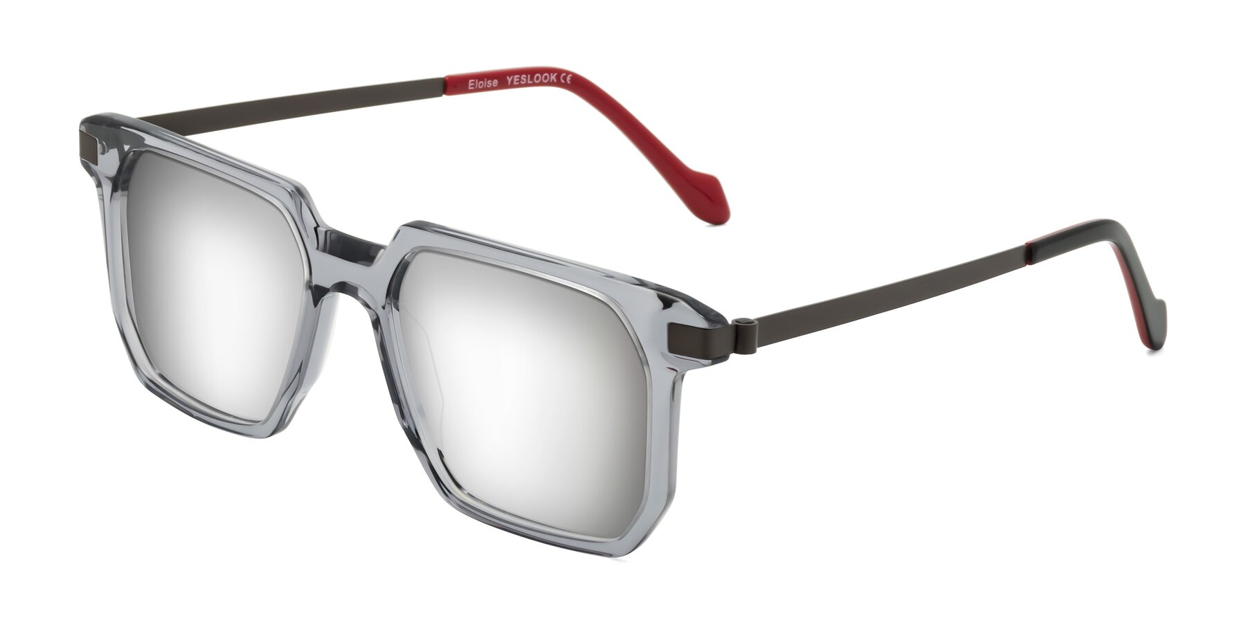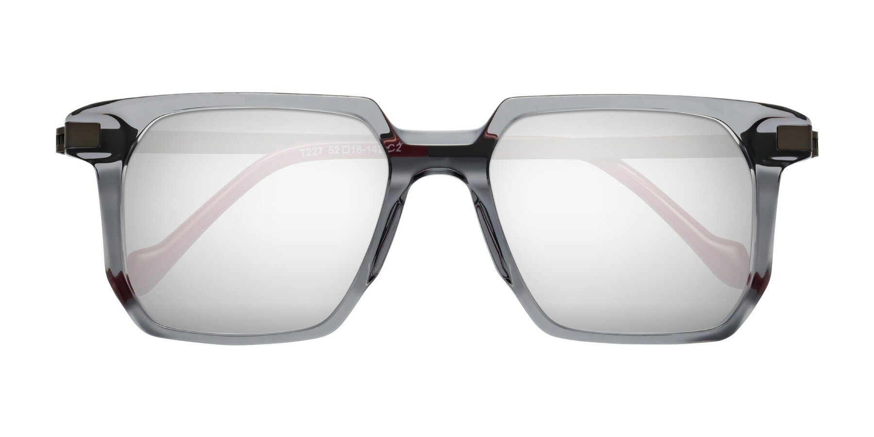 Transparent Gray Mixed Lightweight Square Mirrored Sunglasses with Silver Sunwear Lenses