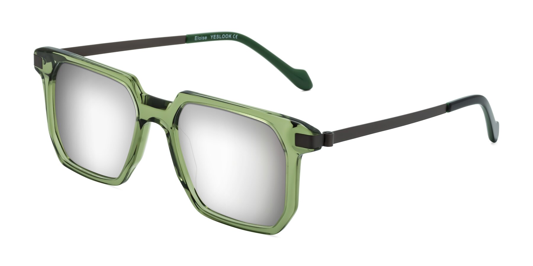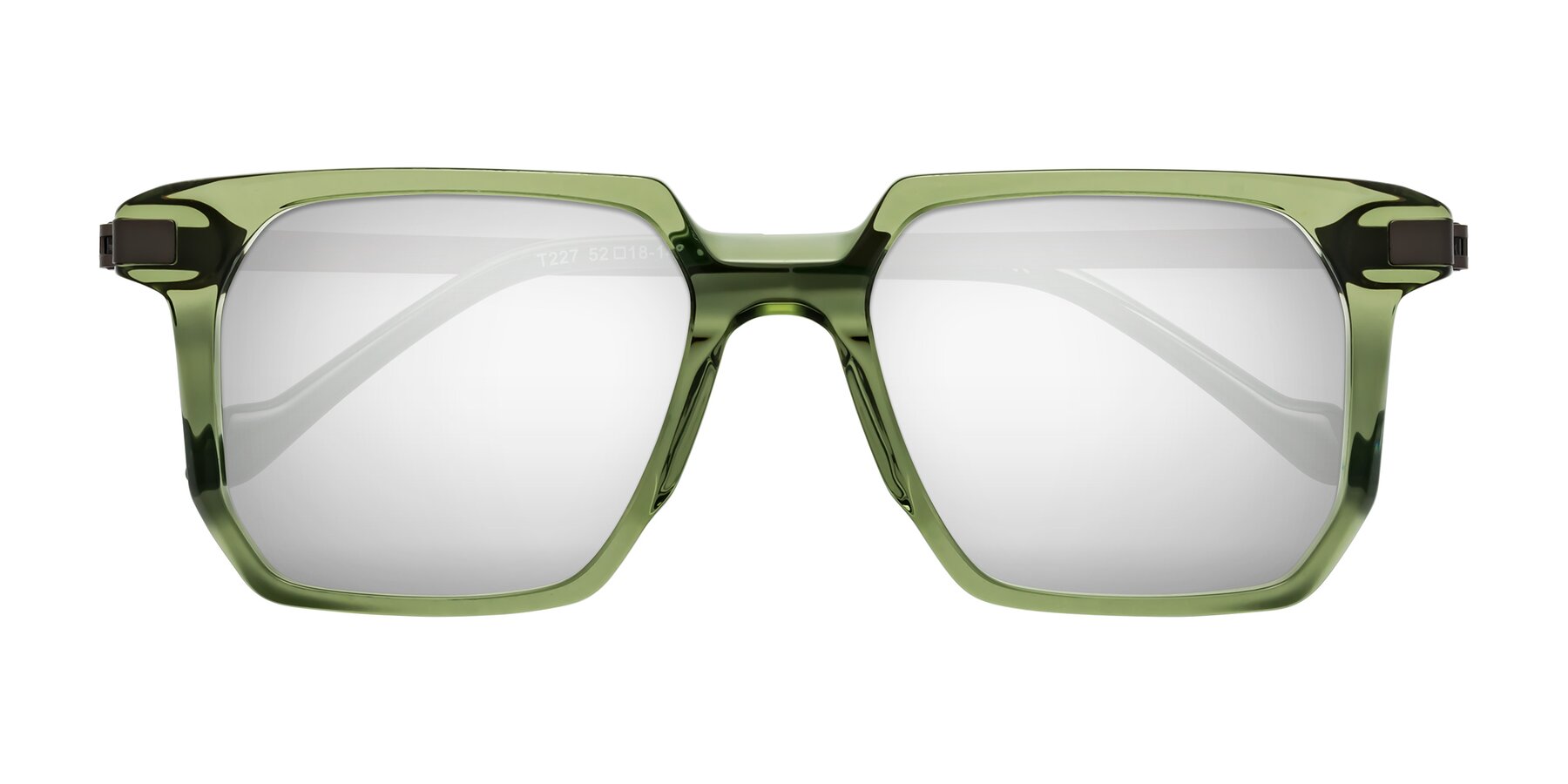 Transparent Green Mixed Lightweight Square Mirrored Sunglasses with Silver Sunwear Lenses
