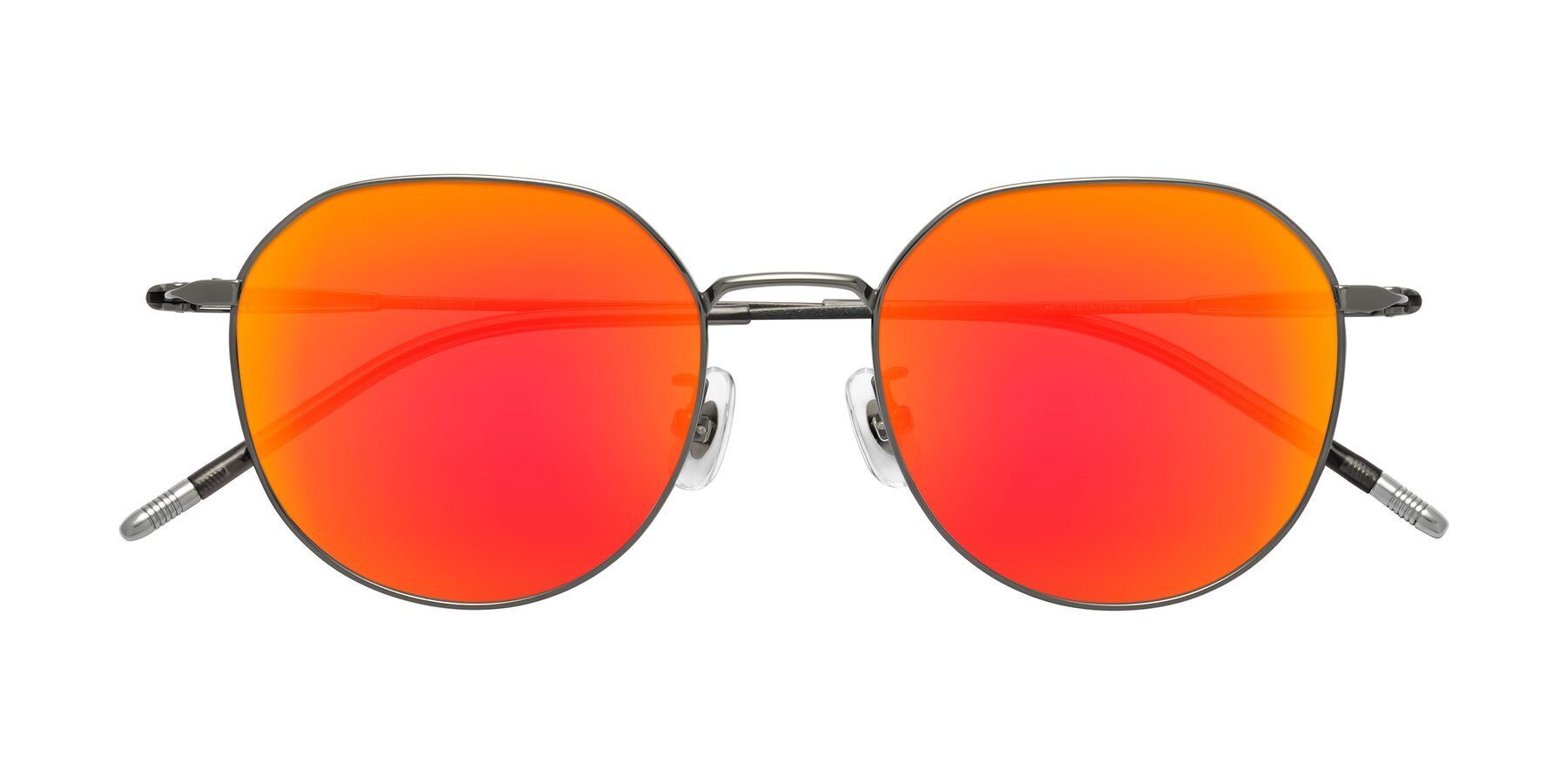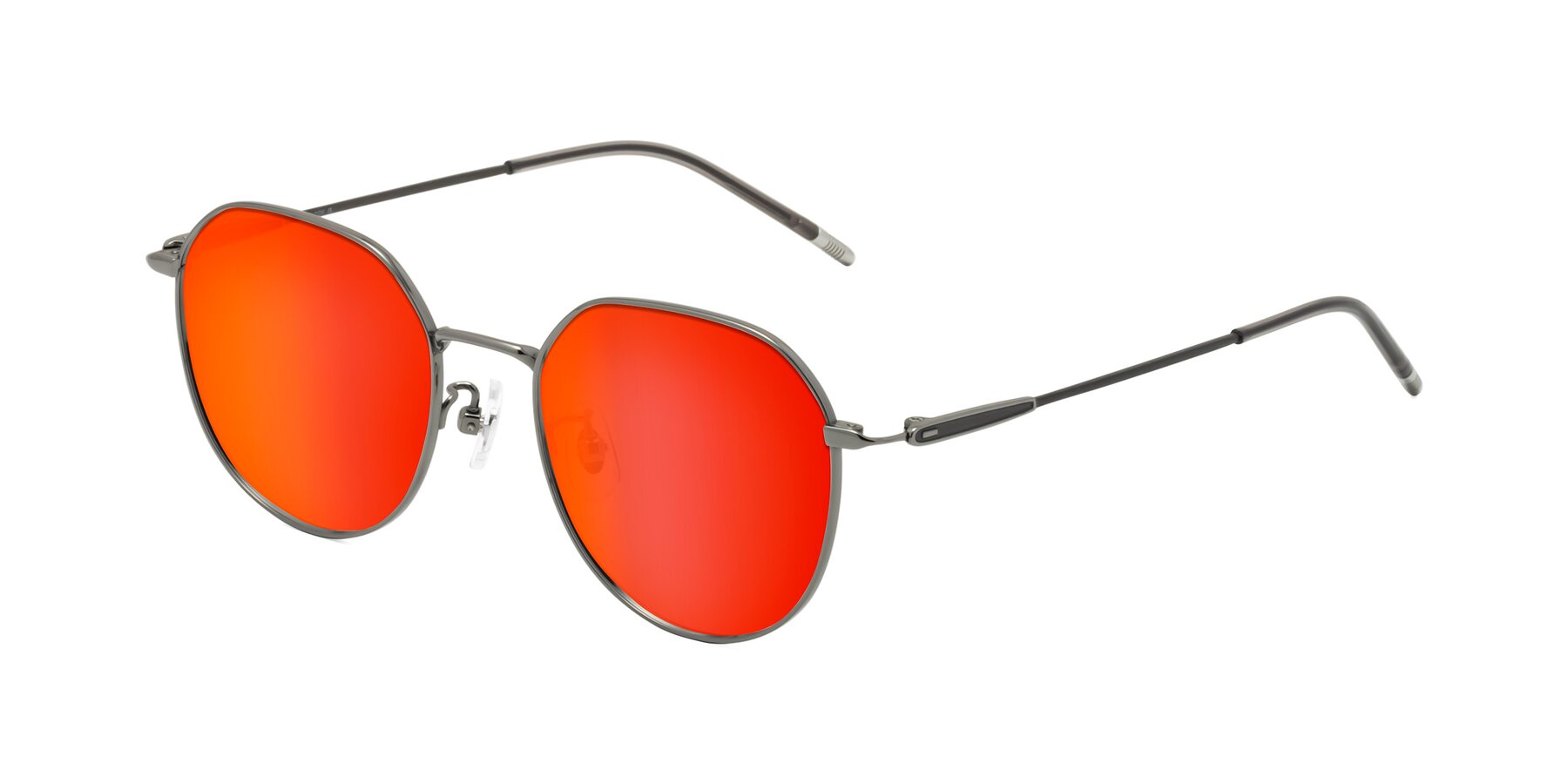 Gunmetal Titanium Round Geometric Mirrored Sunglasses with Red Gold Sunwear Lenses