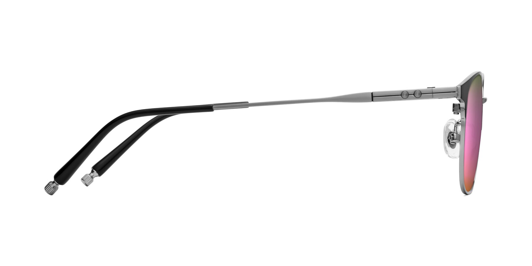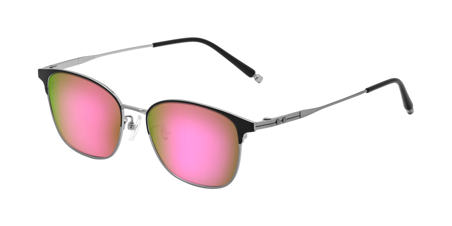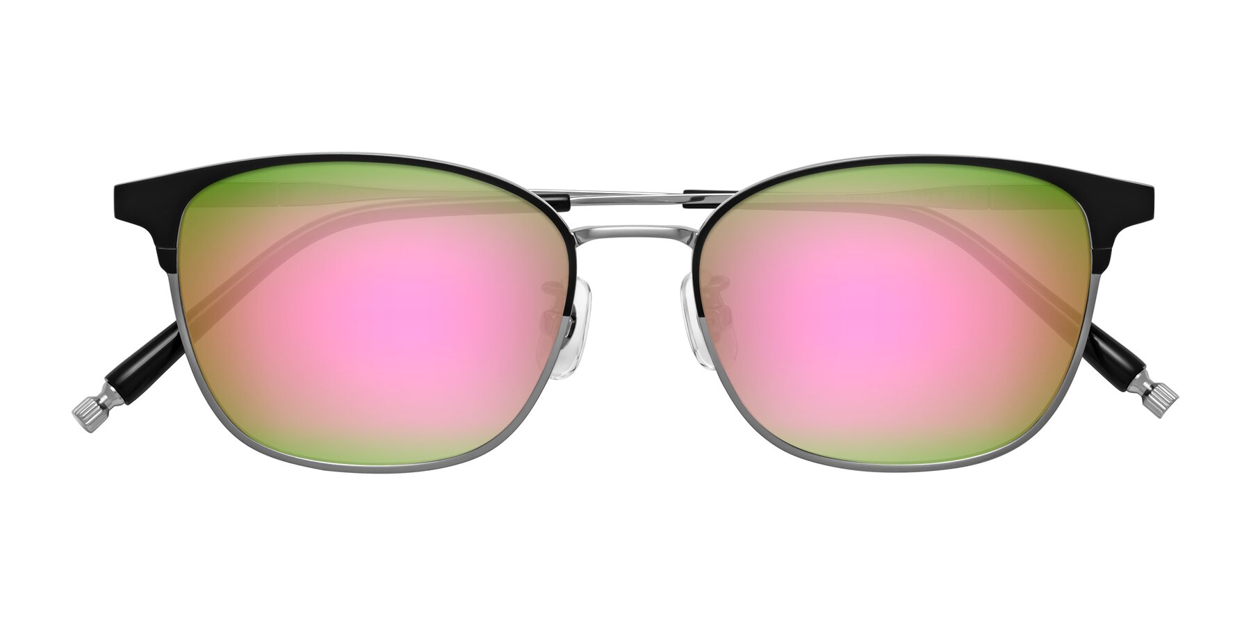 Matte Black/Silver Classic Browline Titanium Mirrored Sunglasses with Pink Sunwear Lenses