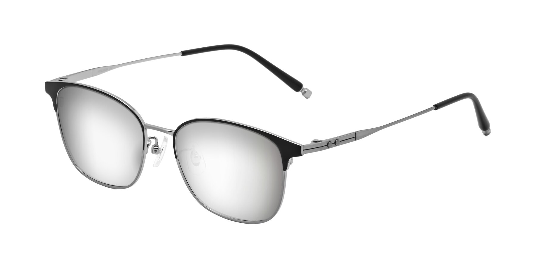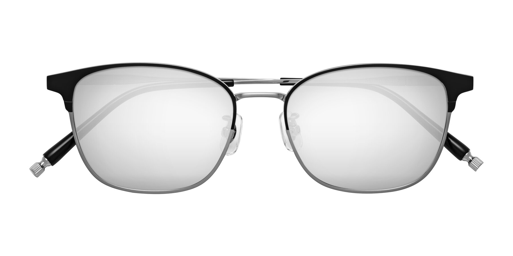 Matte Black/Silver Classic Browline Titanium Mirrored Sunglasses with Silver Sunwear Lenses