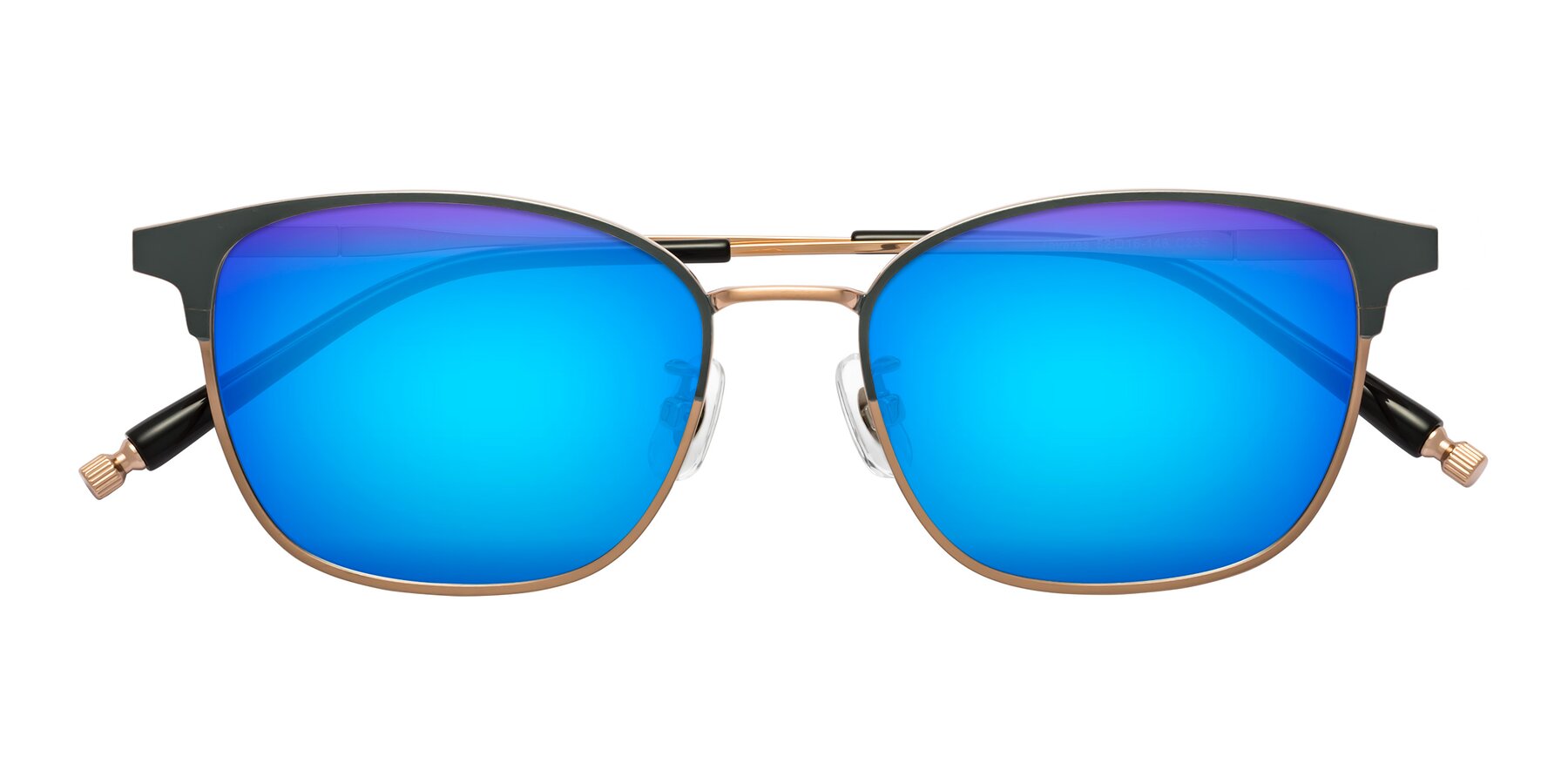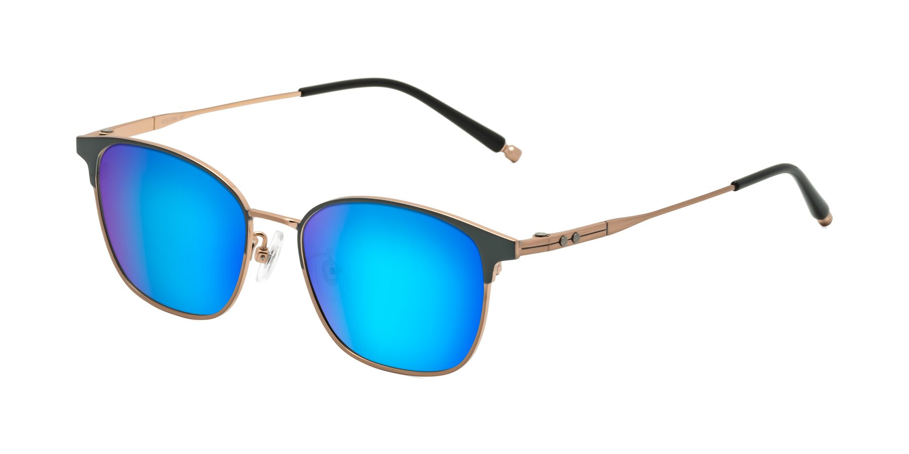 Midnight Gunmetal/Copper Classic Browline Titanium Mirrored Sunglasses with Blue Sunwear Lenses
