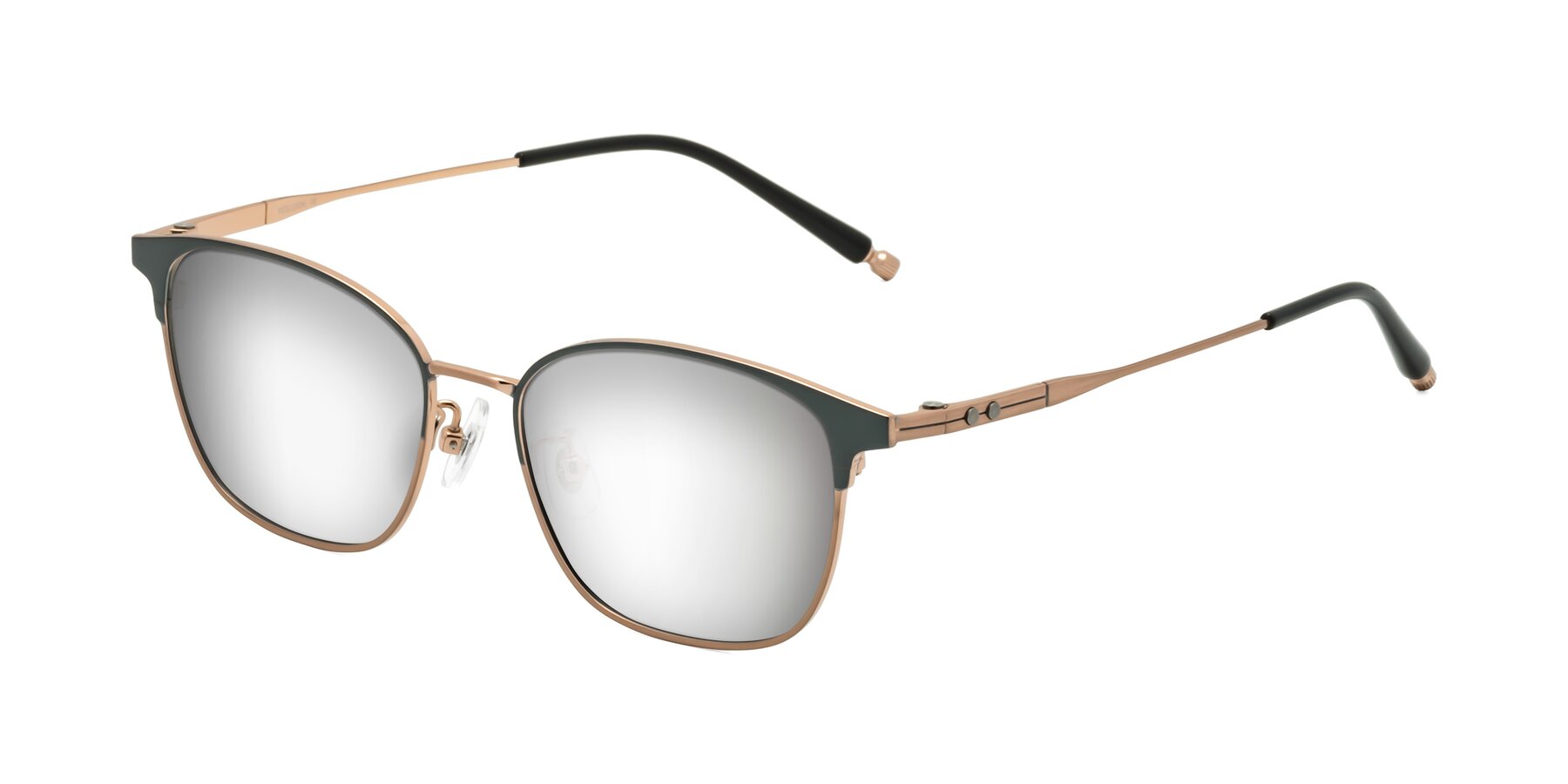 Midnight Gunmetal/Copper Classic Browline Titanium Mirrored Sunglasses with Silver Sunwear Lenses