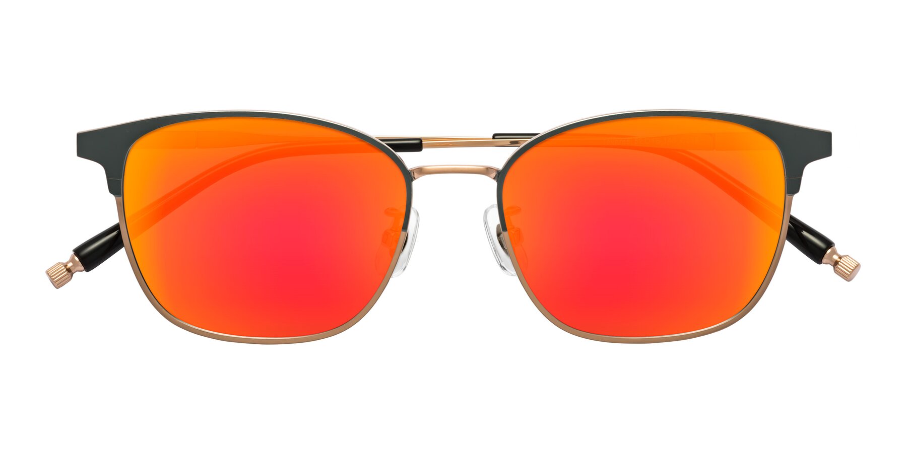 Midnight Gunmetal/Copper Classic Browline Titanium Mirrored Sunglasses with Red Gold Sunwear Lenses