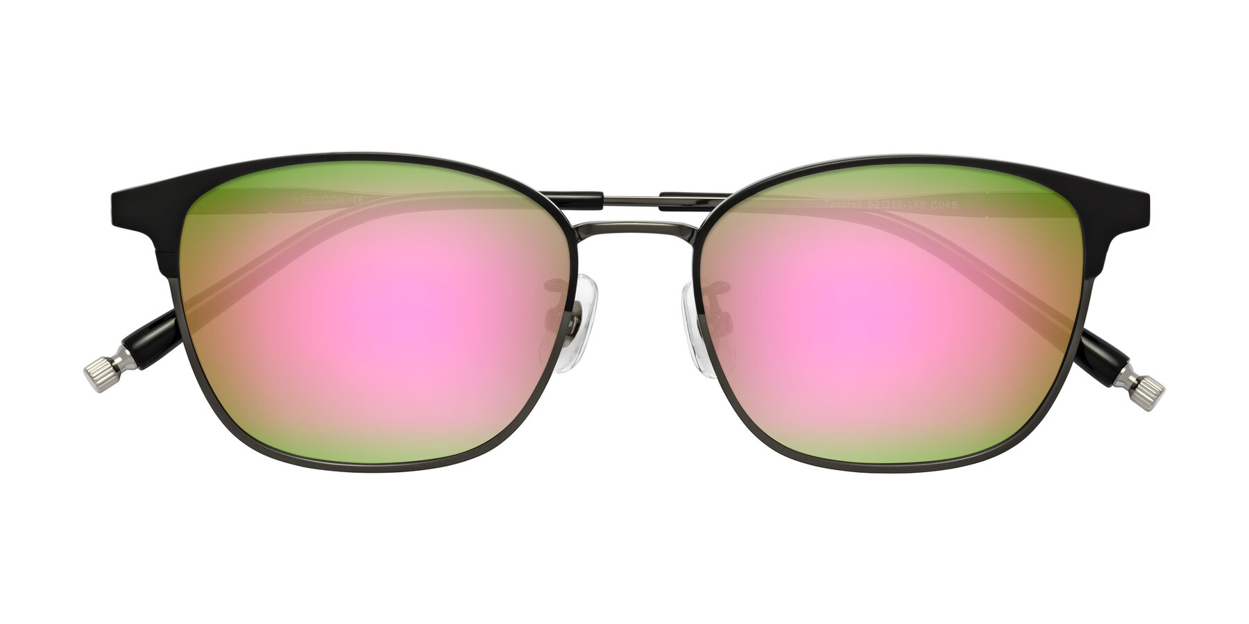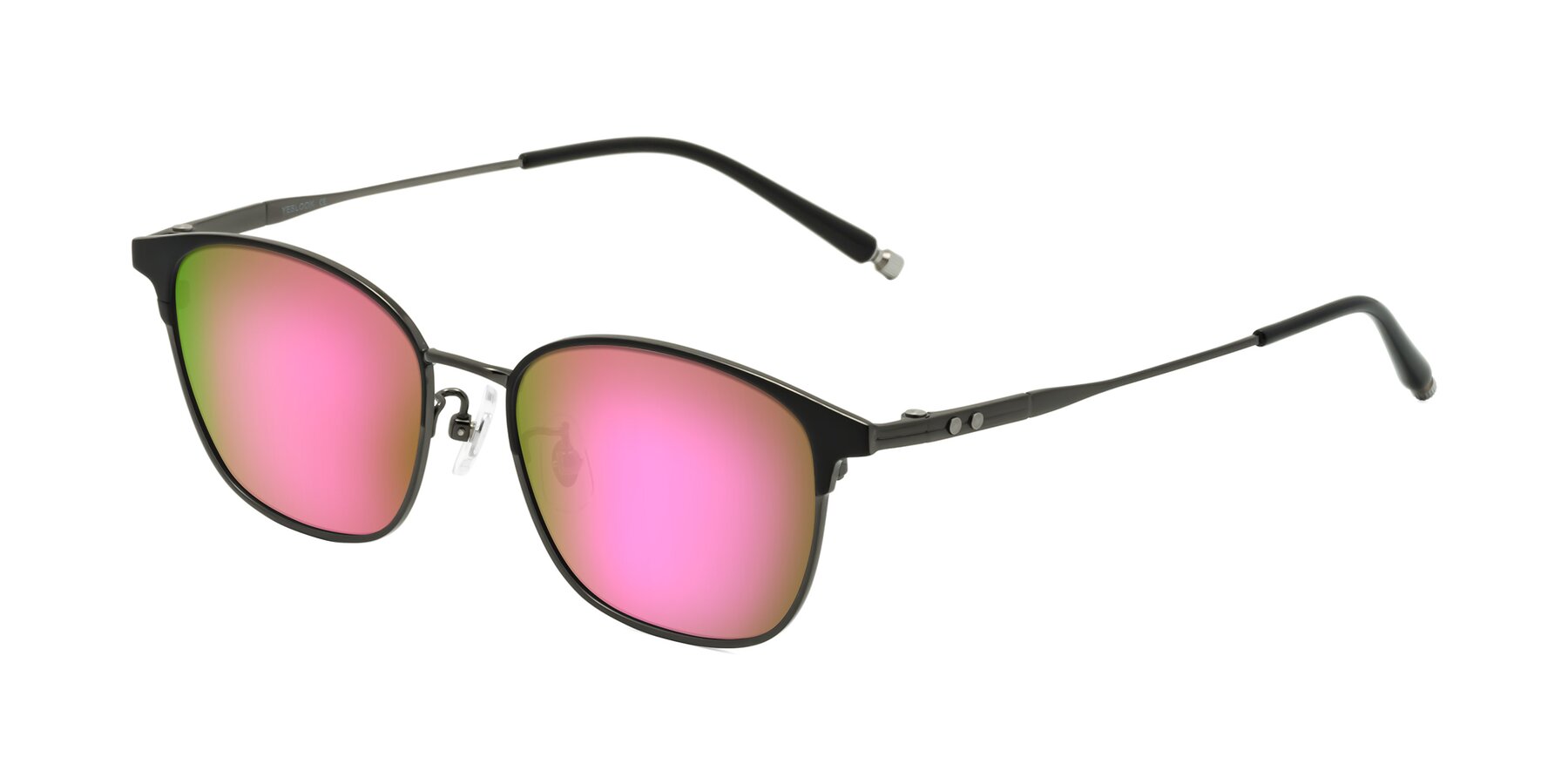 Matte Black/Gunmetal Classic Browline Titanium Mirrored Sunglasses with Pink Sunwear Lenses