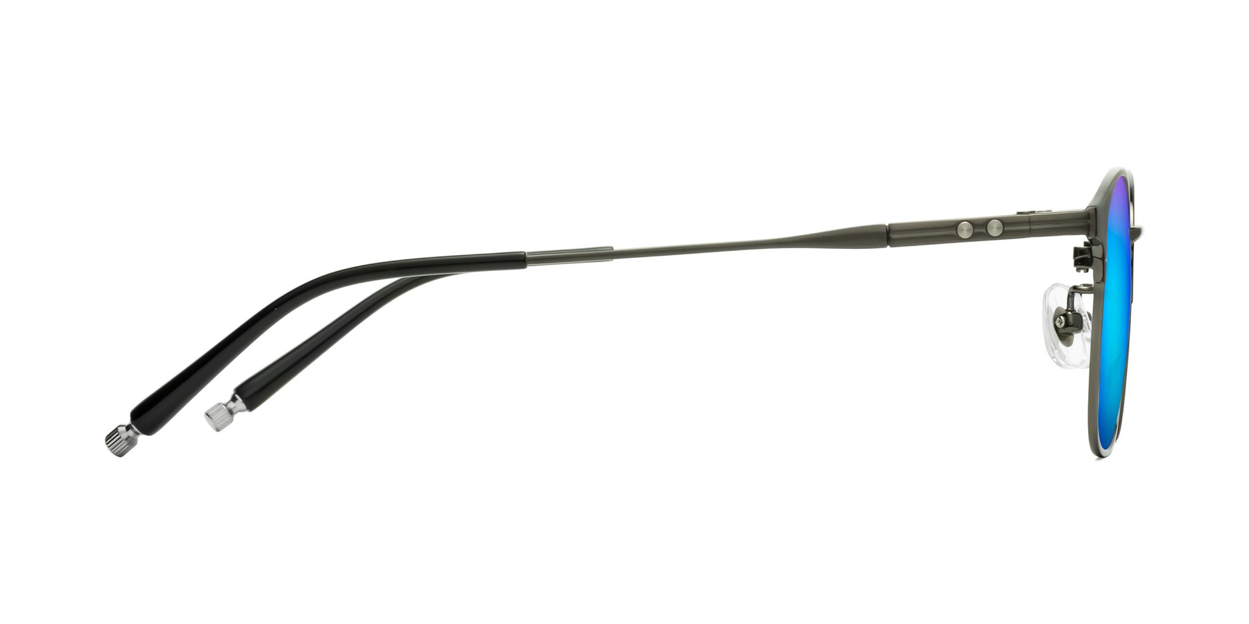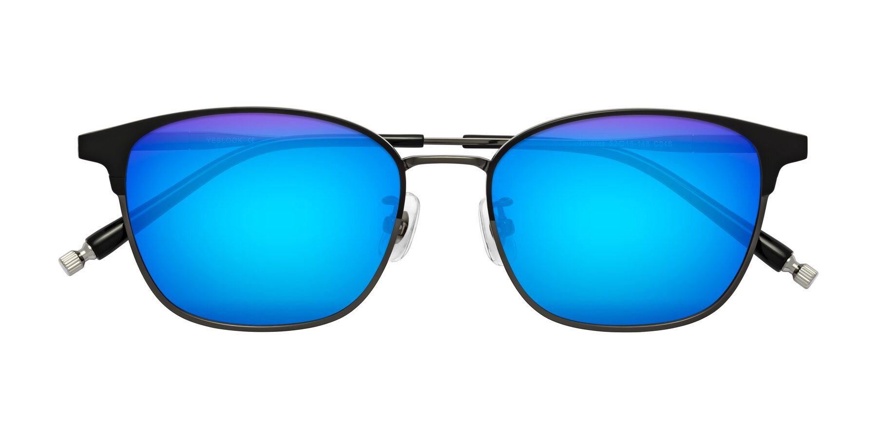 Matte Black/Gunmetal Classic Browline Titanium Mirrored Sunglasses with Blue Sunwear Lenses