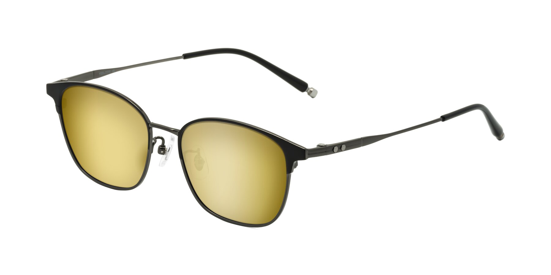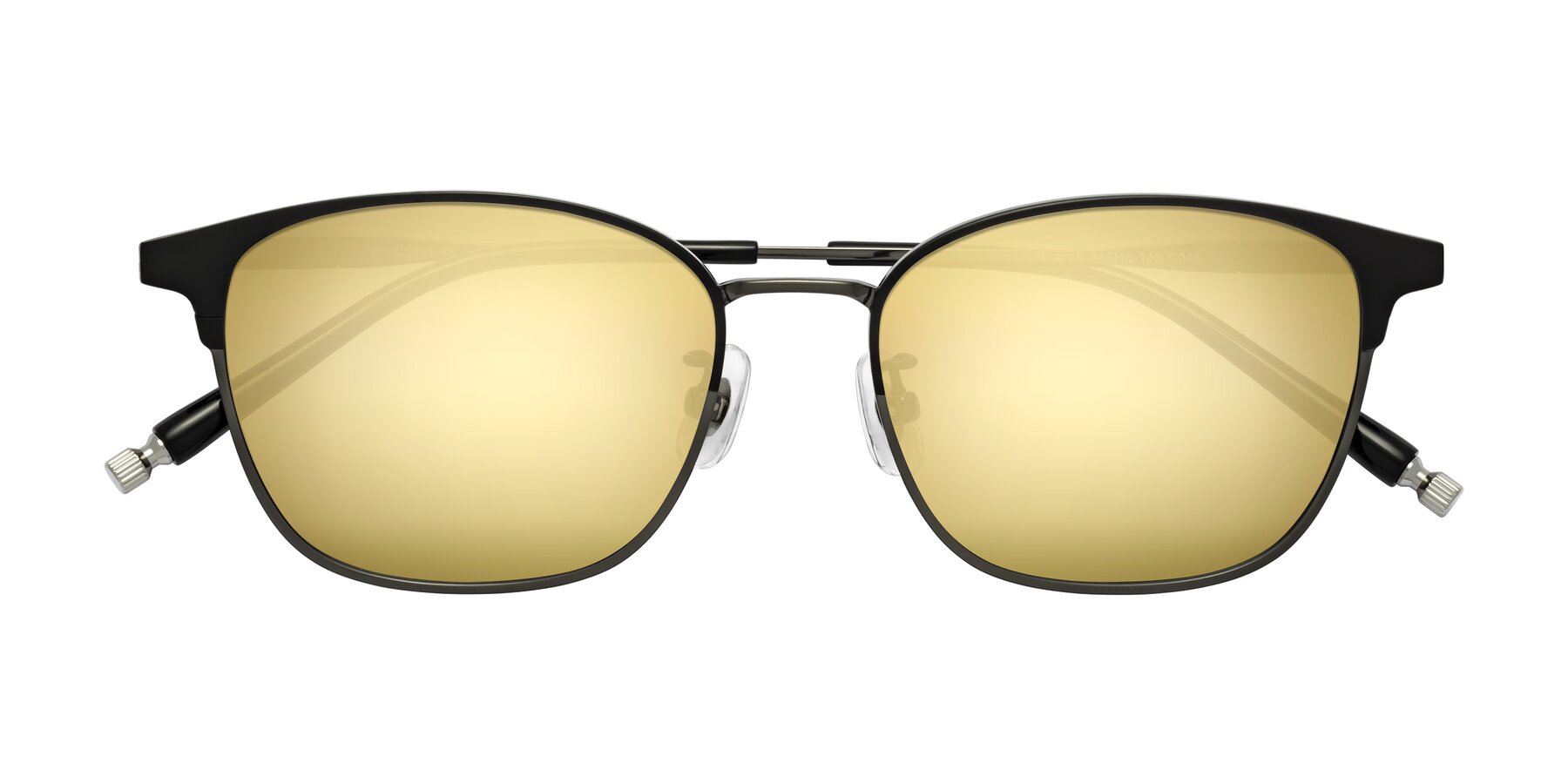 Matte Black/Gunmetal Classic Browline Titanium Mirrored Sunglasses with Gold Sunwear Lenses