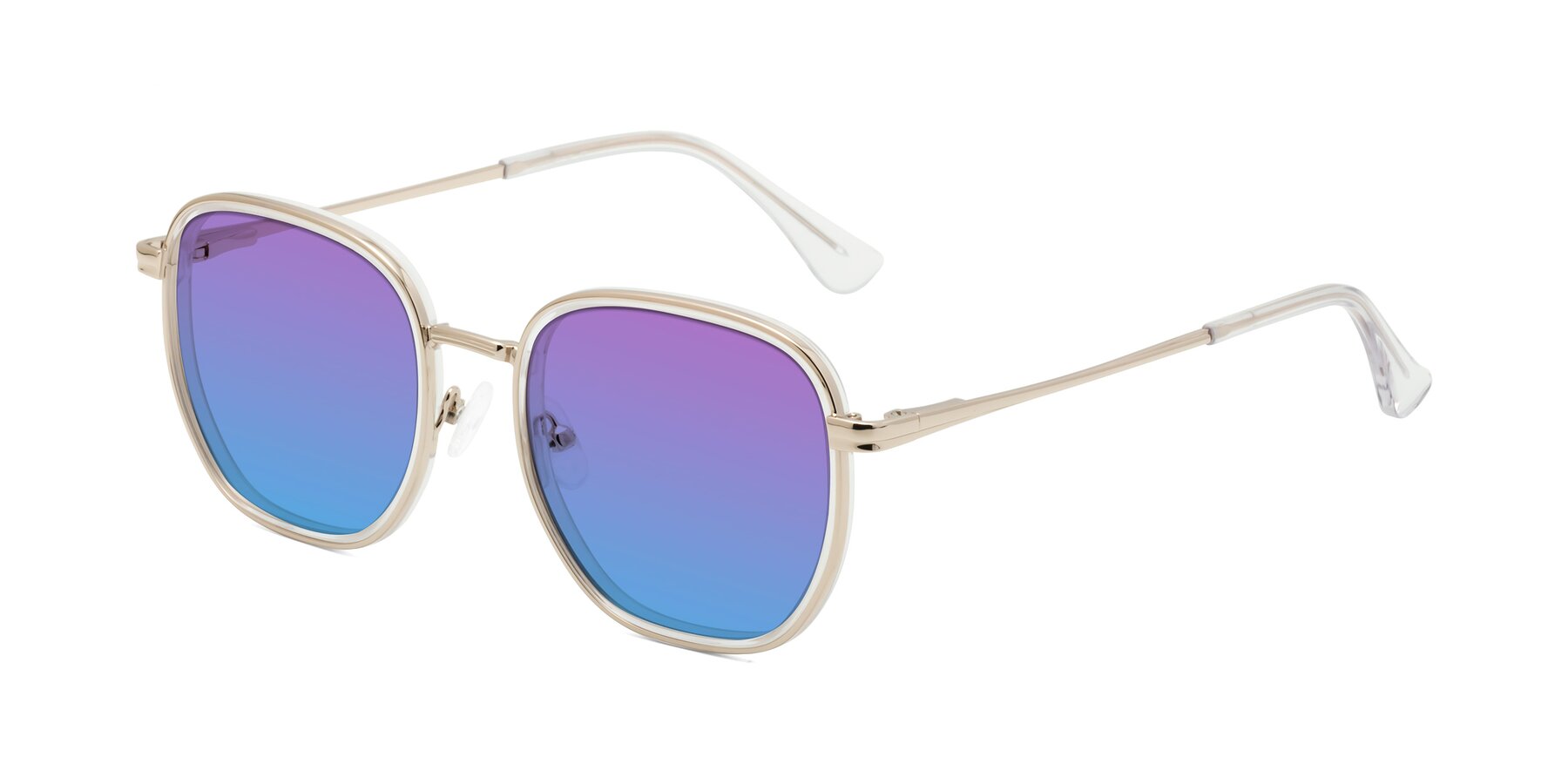 Pale Gold/Clear Mixed Windsor Square Gradient Sunglasses with Purple / Blue Sunwear Lenses