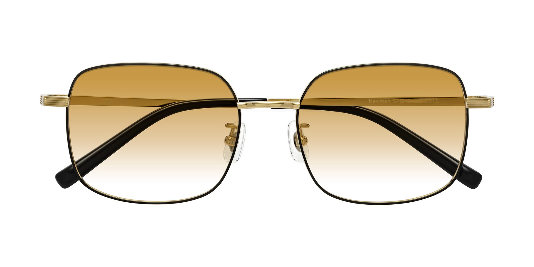 Black/Gold Lightweight Titanium Square Gradient Sunglasses with Champagne Sunwear Lenses