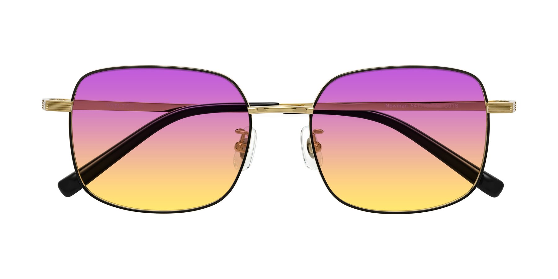 Black/Gold Lightweight Titanium Square Gradient Sunglasses with Purple / Yellow Sunwear Lenses