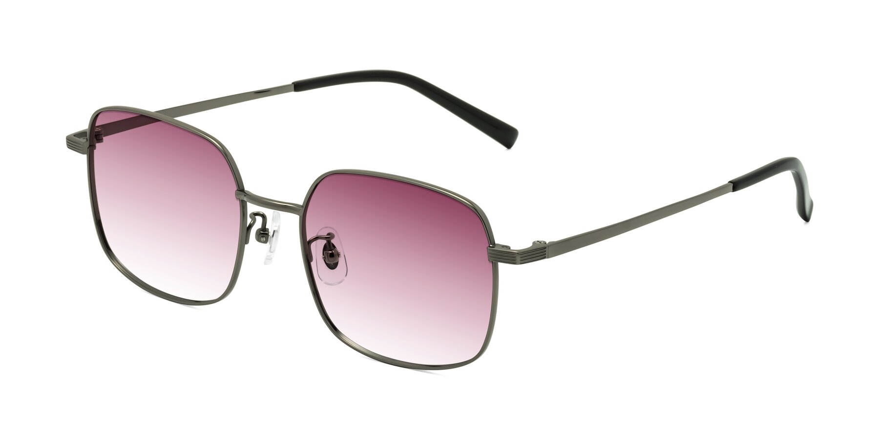 Gunmetal Lightweight Titanium Square Gradient Sunglasses with Wine Sunwear Lenses