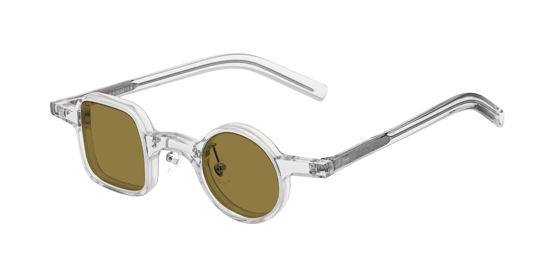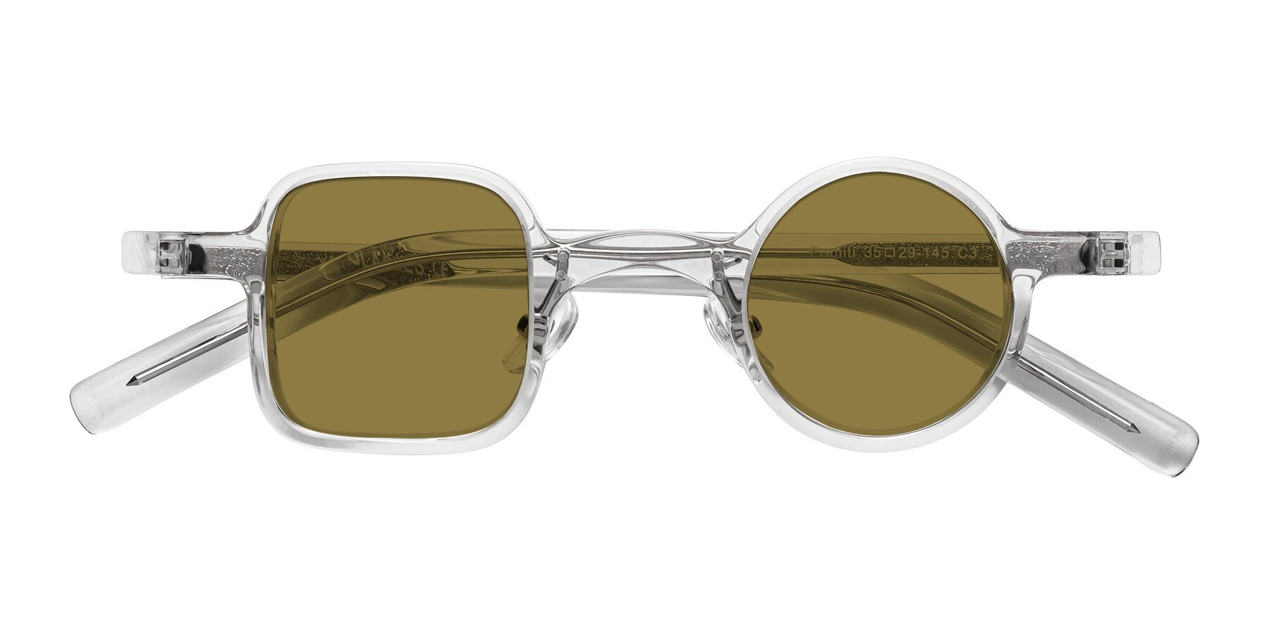 Clear Geek-Chic Round Square Polarized Sunglasses with Brown Sunwear Lenses