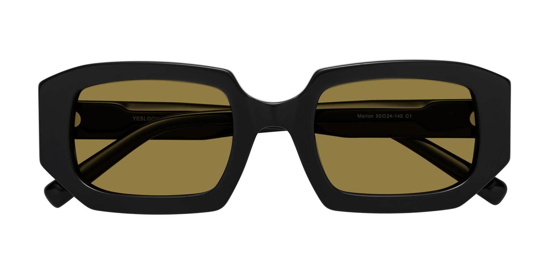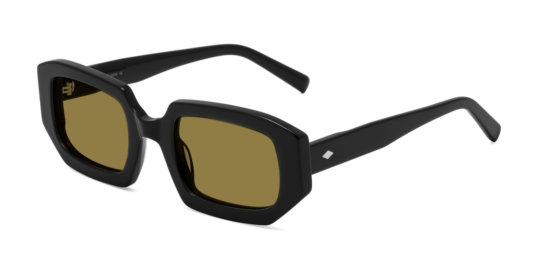 Black Thick Hipster Rectangle Polarized Sunglasses with Brown Sunwear Lenses