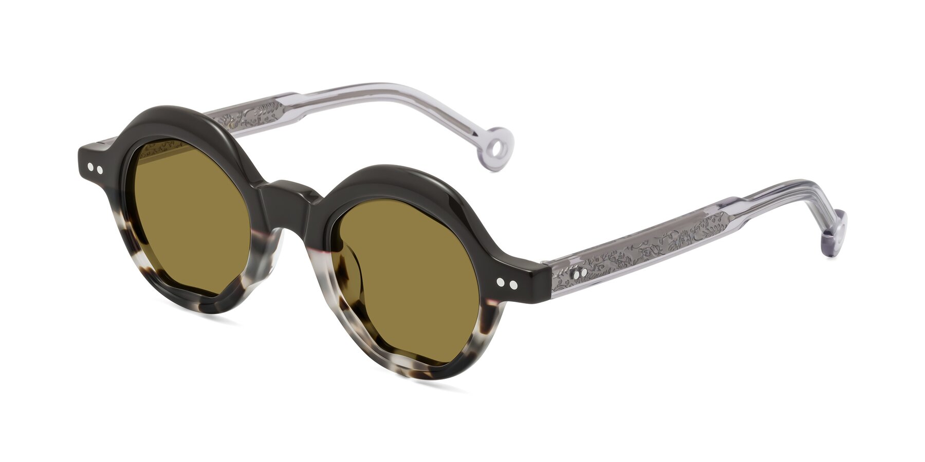 Geometry takes a bold turn in these geometric round acetate frames, where sculptural shaping meets unexpected charm. The creative contour flows effortlessly, blending irregular structure with circular balance. Vintage-engraved metal rivet temples add a refined detail rooted in tradition, while the silhouette stays playful with a quirky vibe and artistic spirit. As designer frames, they exude sophistication without feeling conventional, crafted for those who seek eyewear that challenges the ordinary. From every angle, they offer a fresh perspective that is elevated, expressive, and full of personality. Styles: Designer, Retro-Vintage