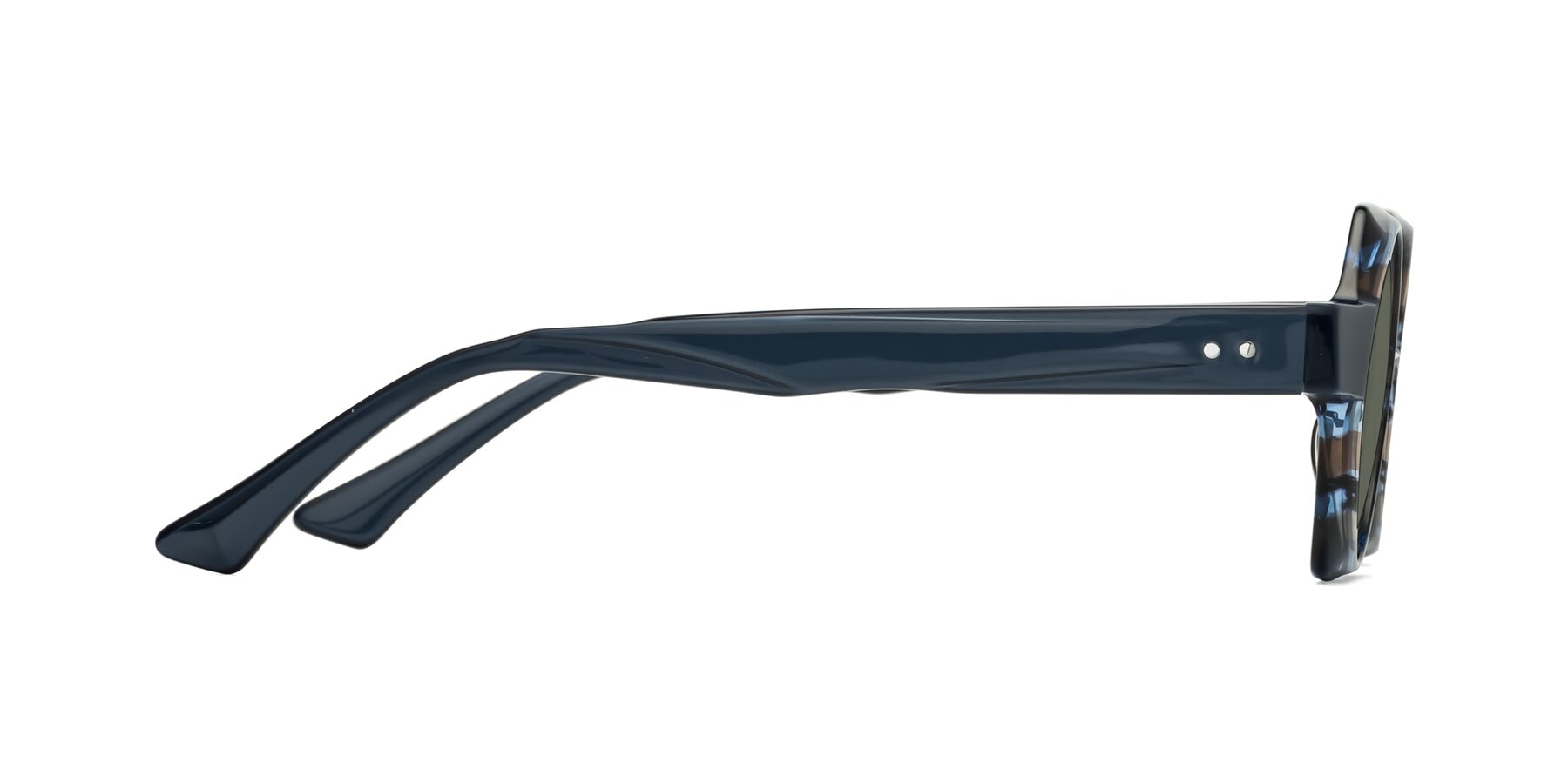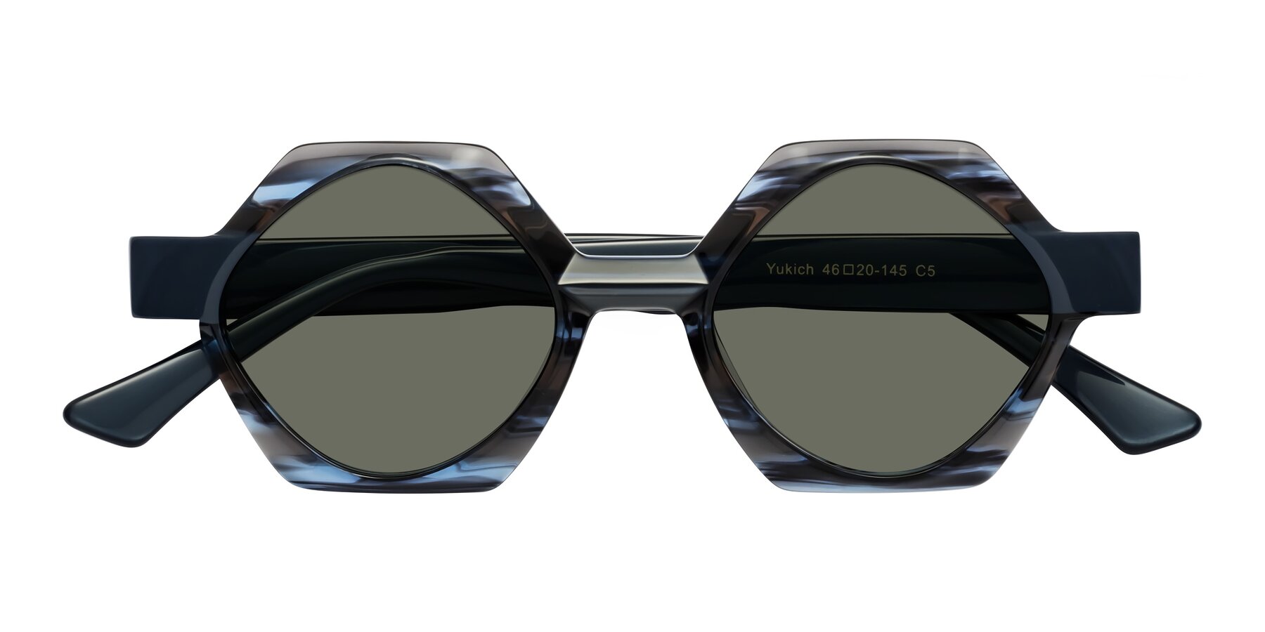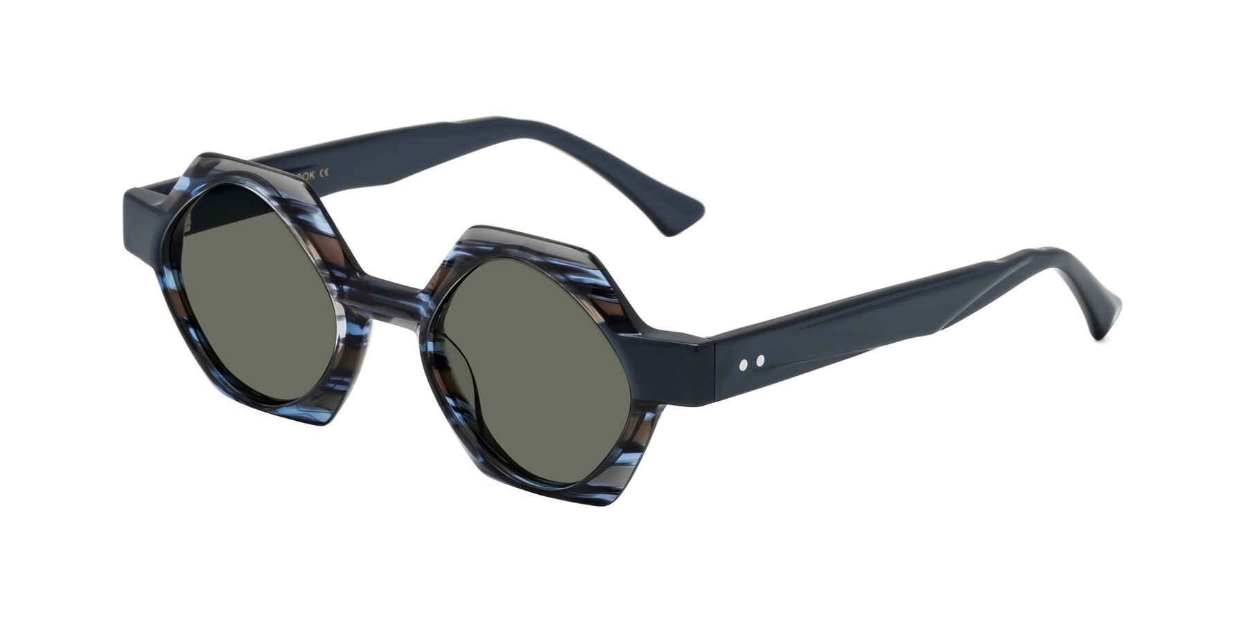 Blue Striped Designer Round Geometric Polarized Sunglasses with Gray Sunwear Lenses