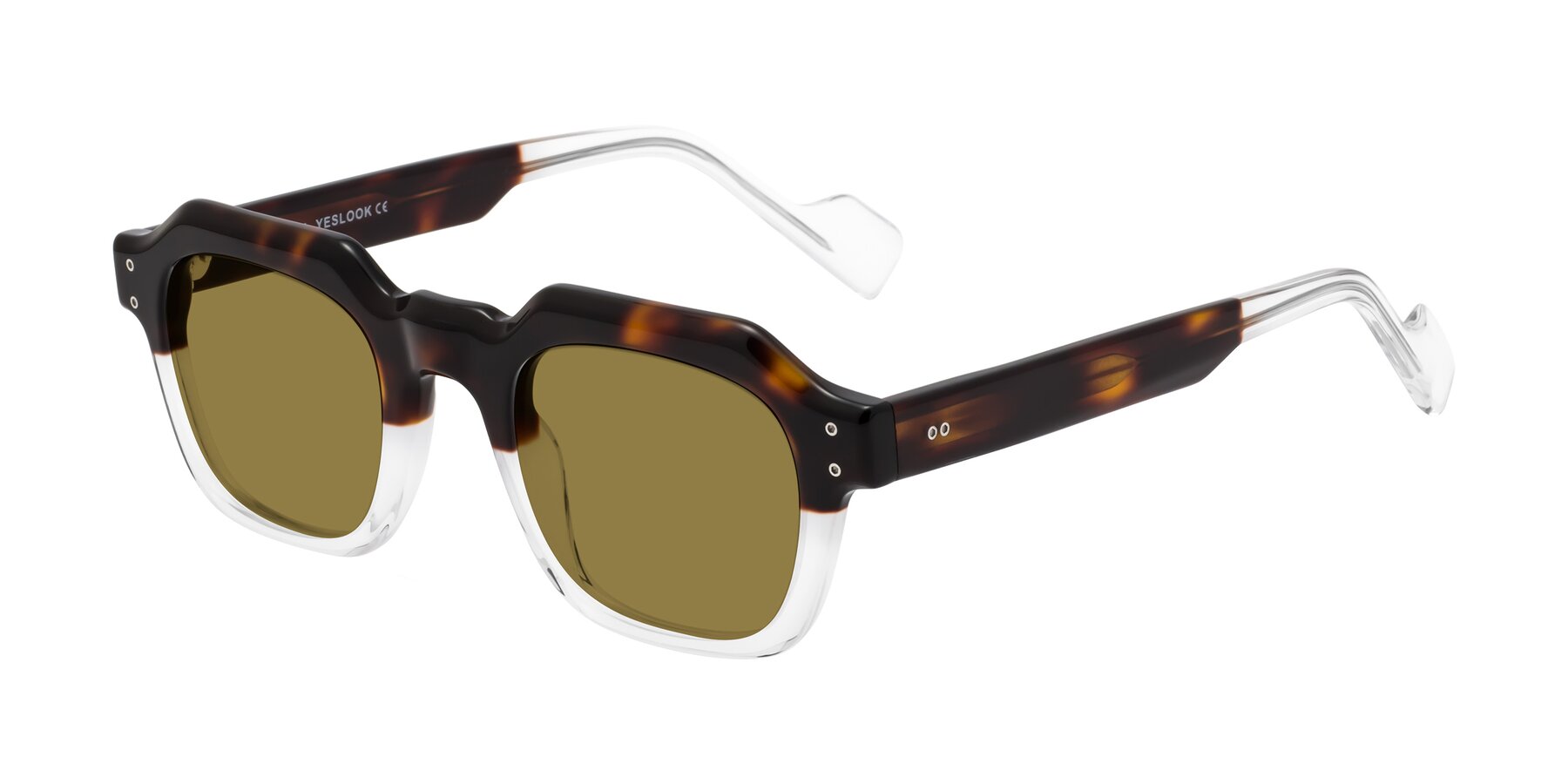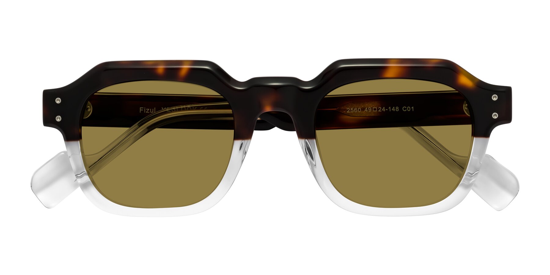 Tortoise/Clear Retro-Vintage Geometric Full-Rim Polarized Sunglasses with Brown Sunwear Lenses