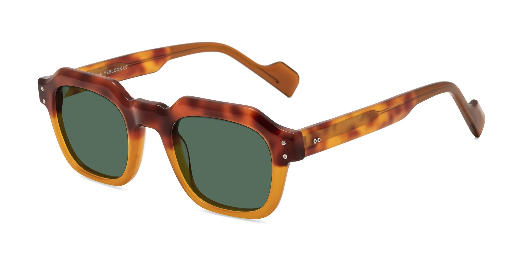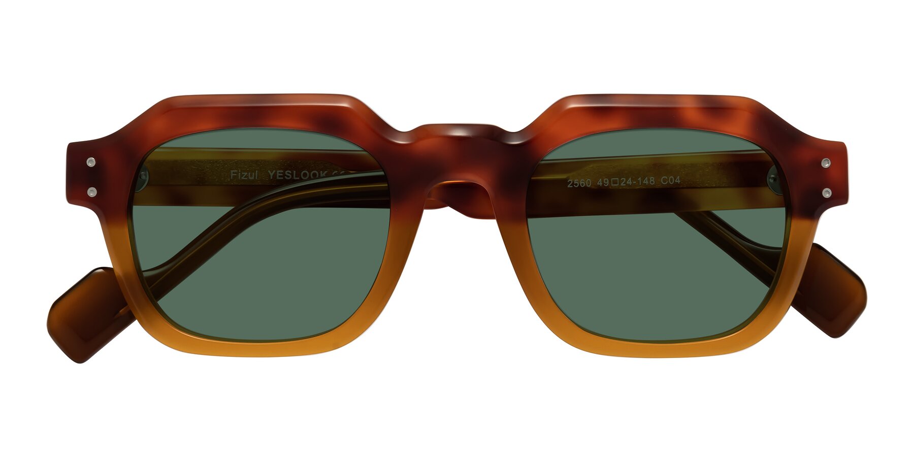 Tortoise/Pumpkin Retro-Vintage Geometric Full-Rim Polarized Sunglasses with Green Sunwear Lenses