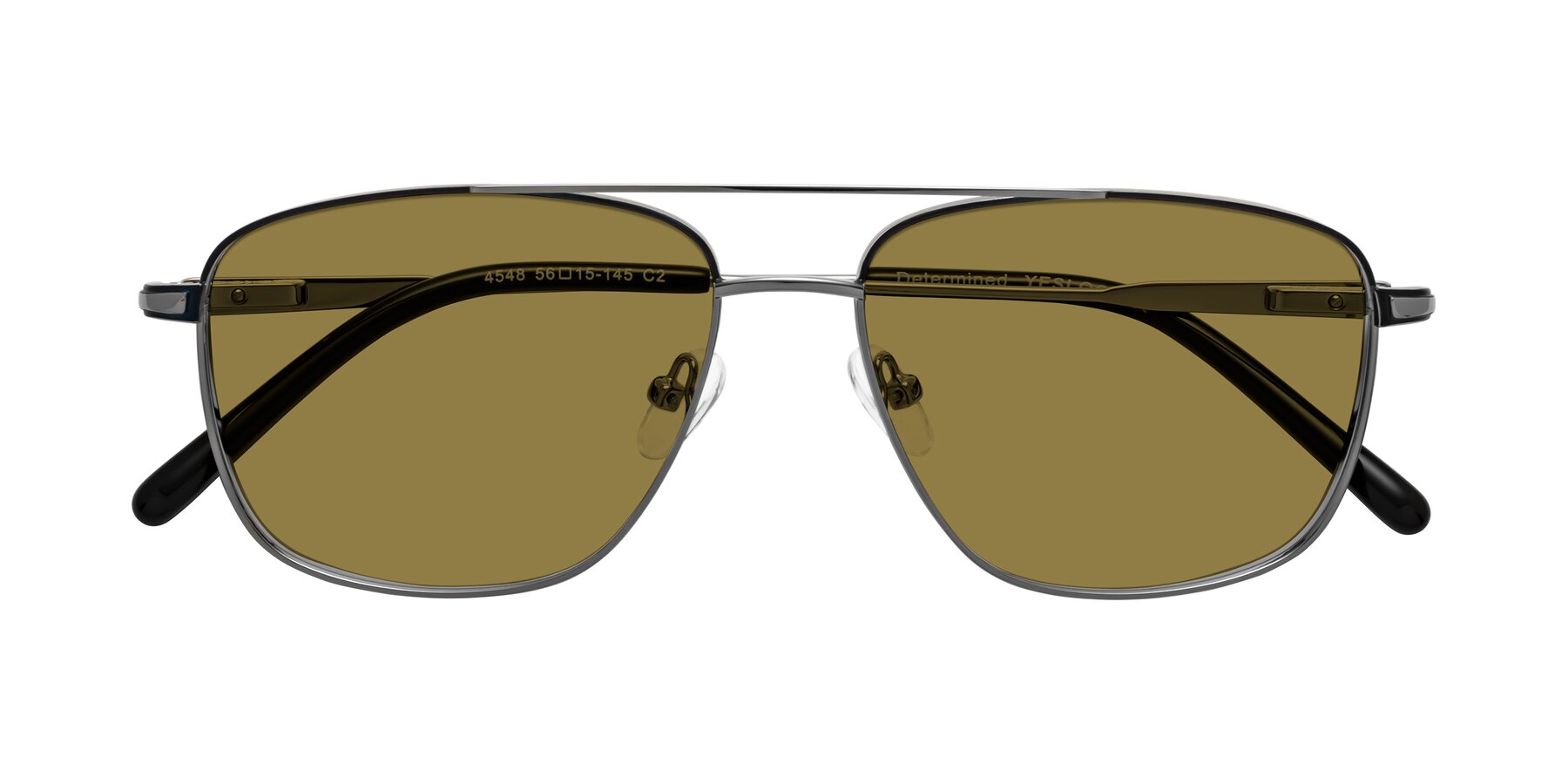 Gunmetal/Deep Navy Grandpa Double Bridge Metal Polarized Sunglasses with Brown Sunwear Lenses