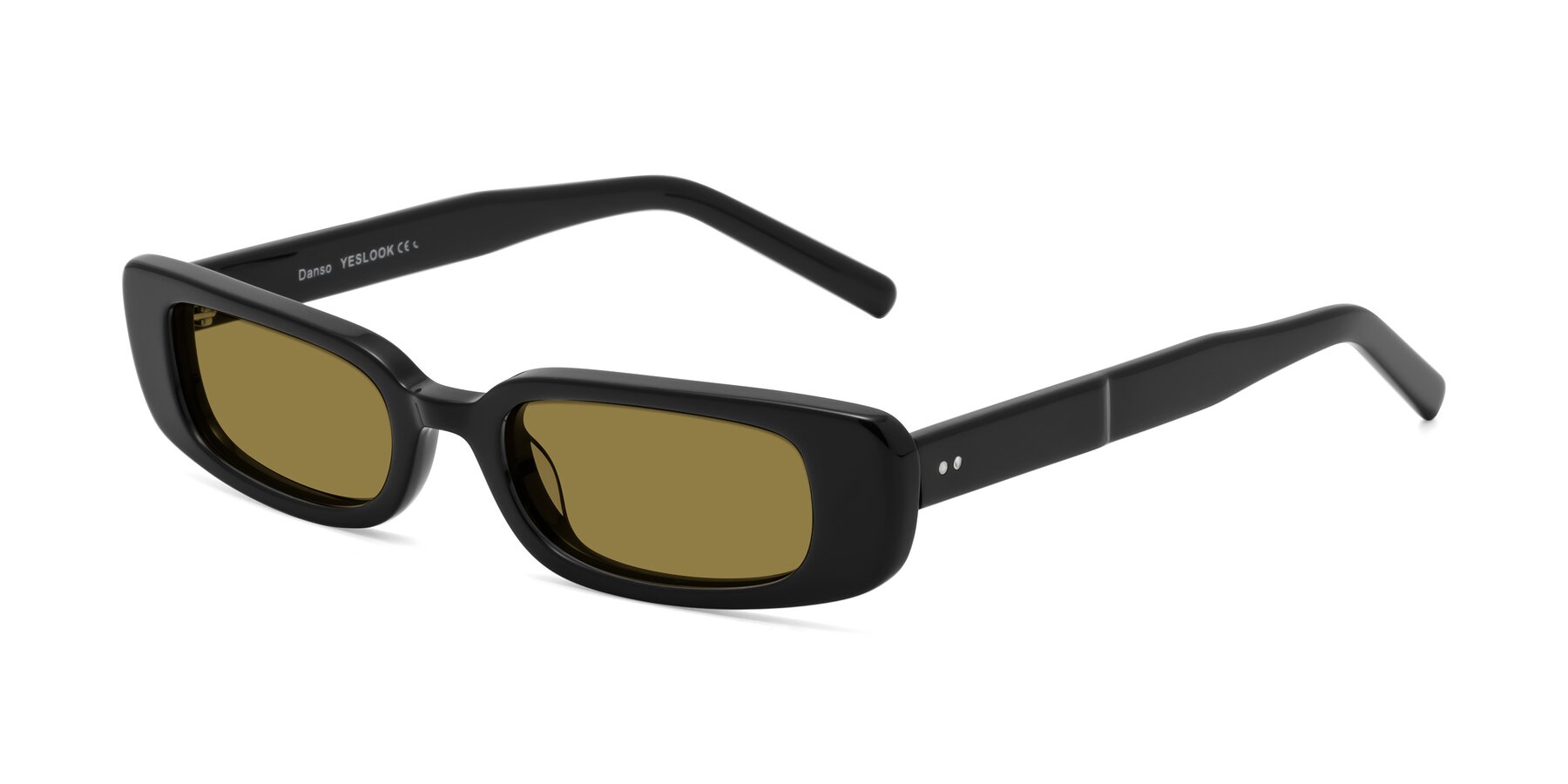 Black Geek-Chic Acetate Rectangle Polarized Sunglasses with Brown Sunwear Lenses