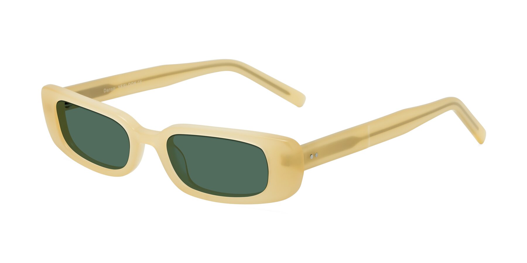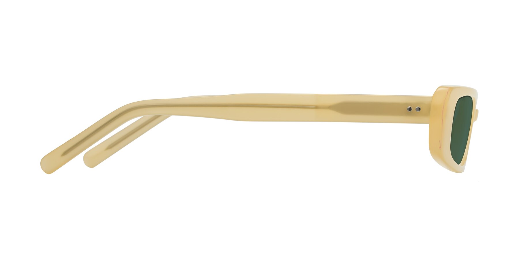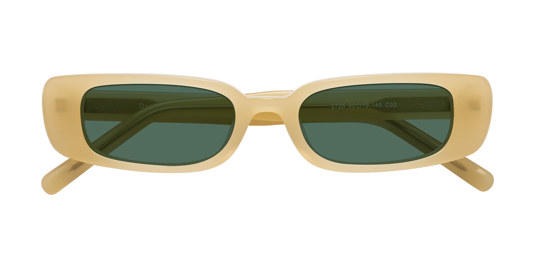 Pastel Beige Geek-Chic Acetate Rectangle Polarized Sunglasses with Green Sunwear Lenses