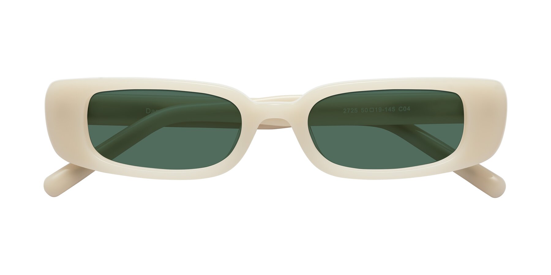 Milky White Geek-Chic Acetate Rectangle Polarized Sunglasses with Green Sunwear Lenses