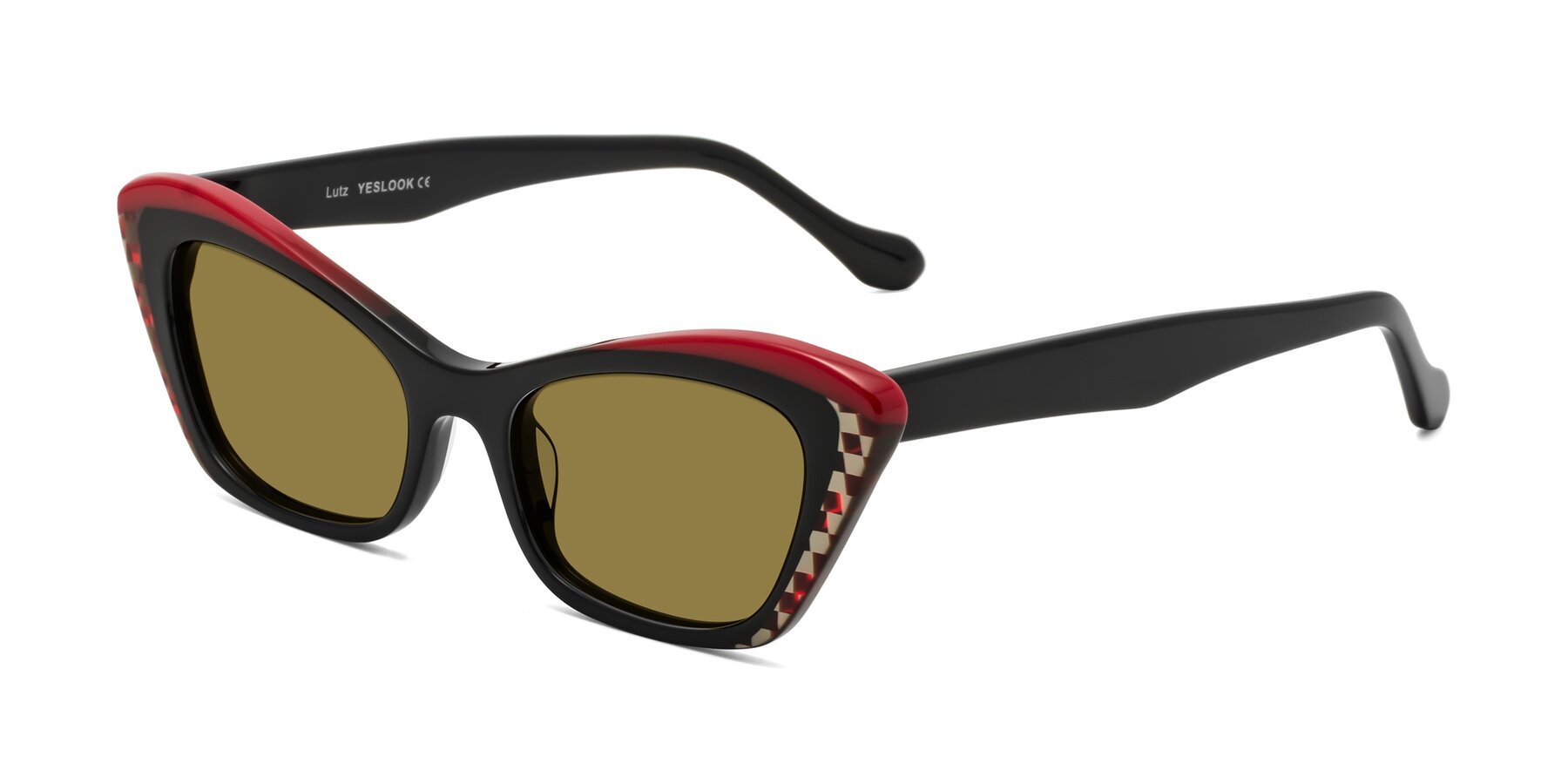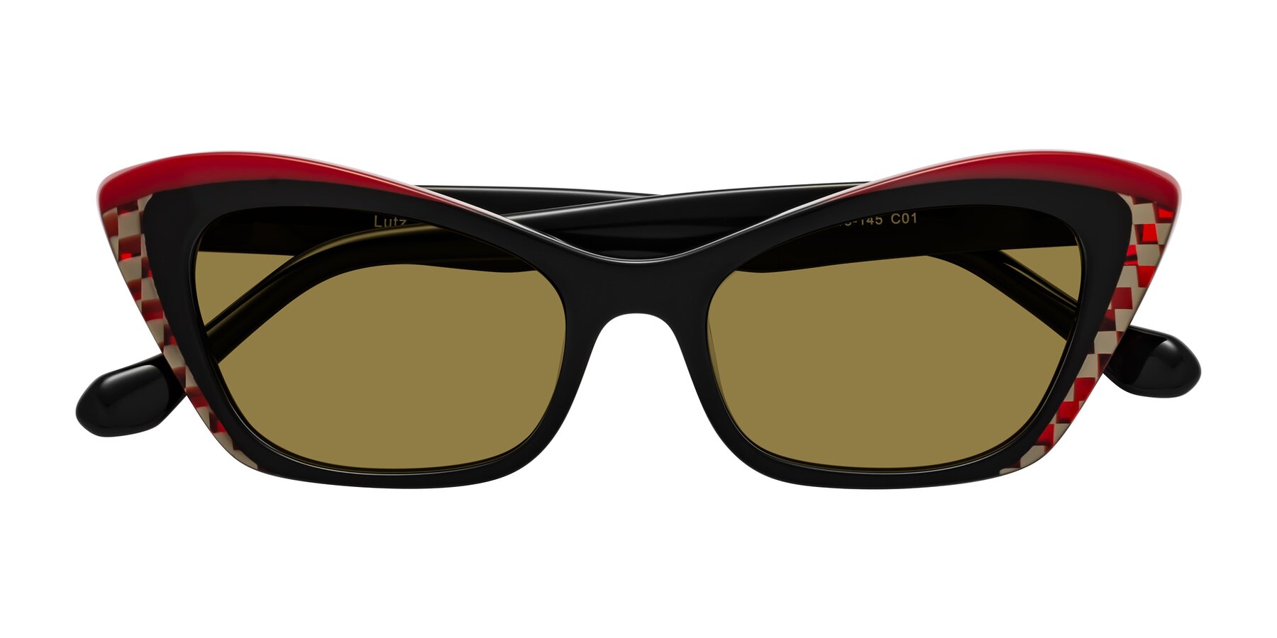 Black/Red Hipster Acetate Butterfly Polarized Sunglasses with Brown Sunwear Lenses