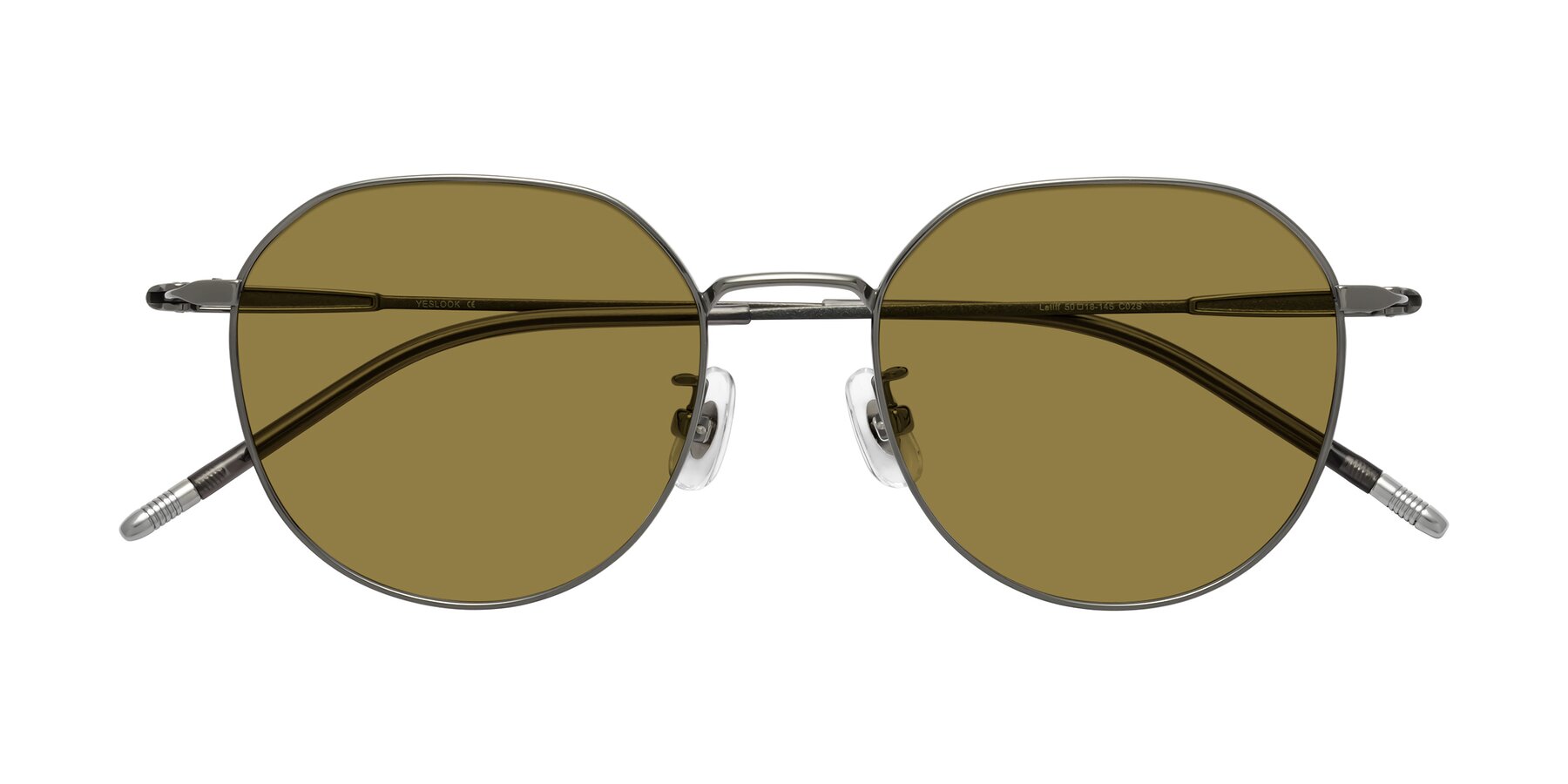 Gunmetal Titanium Round Geometric Polarized Sunglasses with Brown Sunwear Lenses