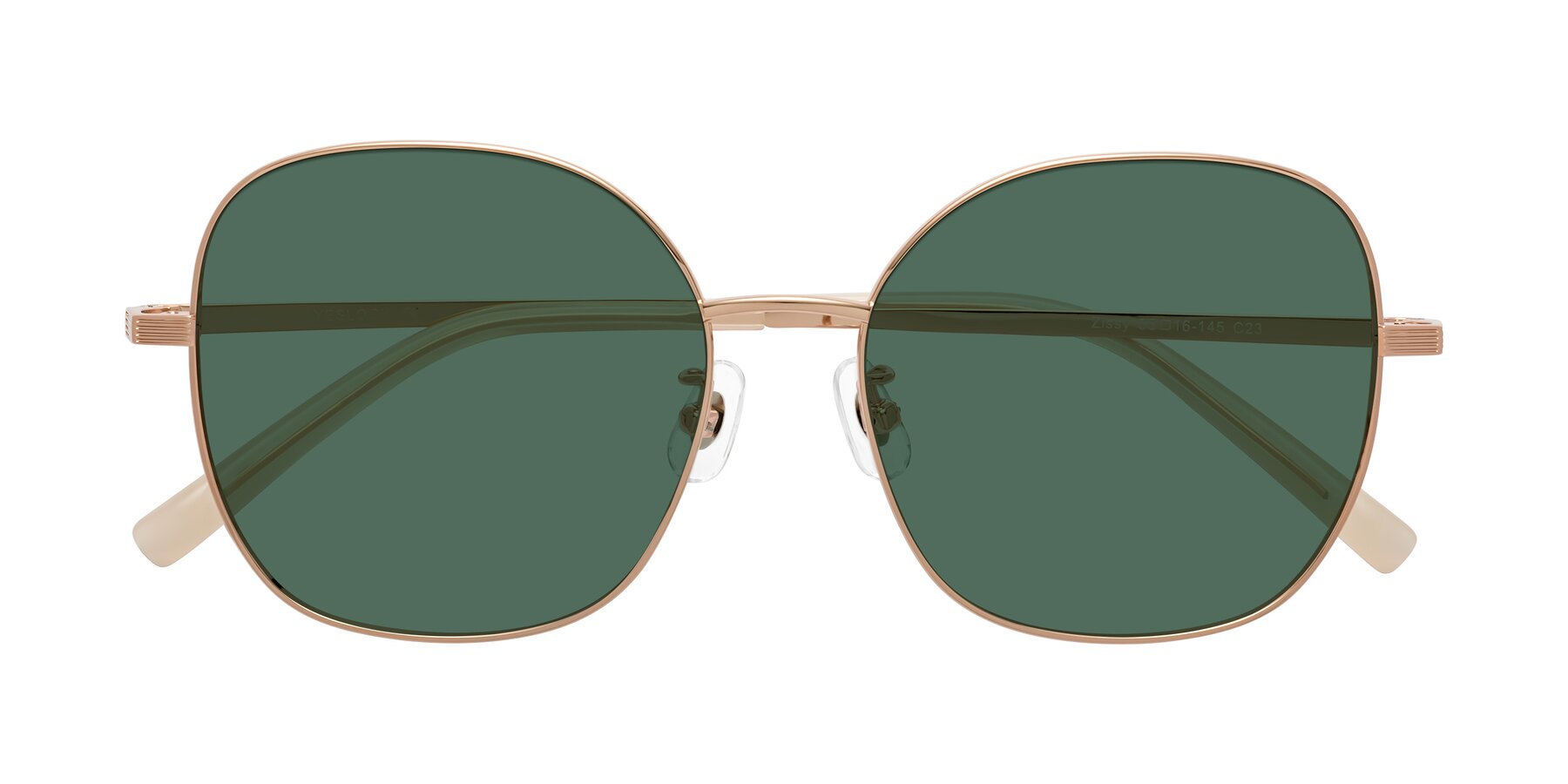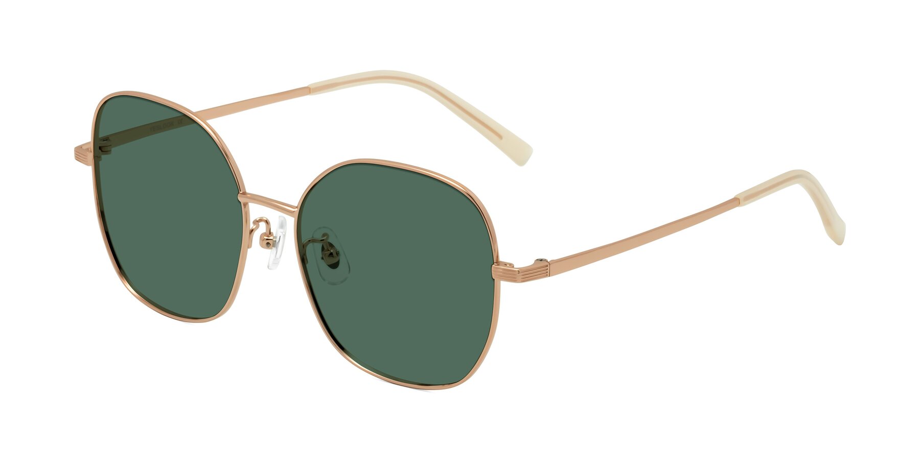Rose Gold Oversized Hipster Titanium Polarized Sunglasses with Green Sunwear Lenses