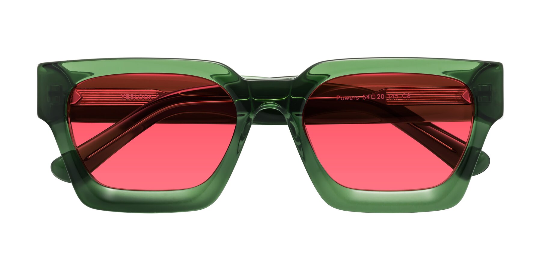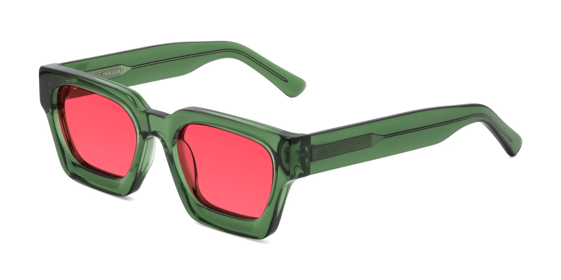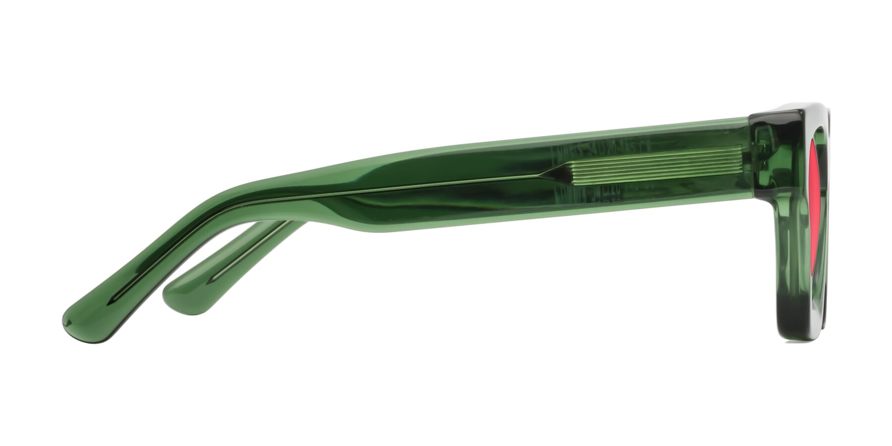 Jade Green Thick Geek-Chic Geometric Tinted Sunglasses with Red Sunwear Lenses