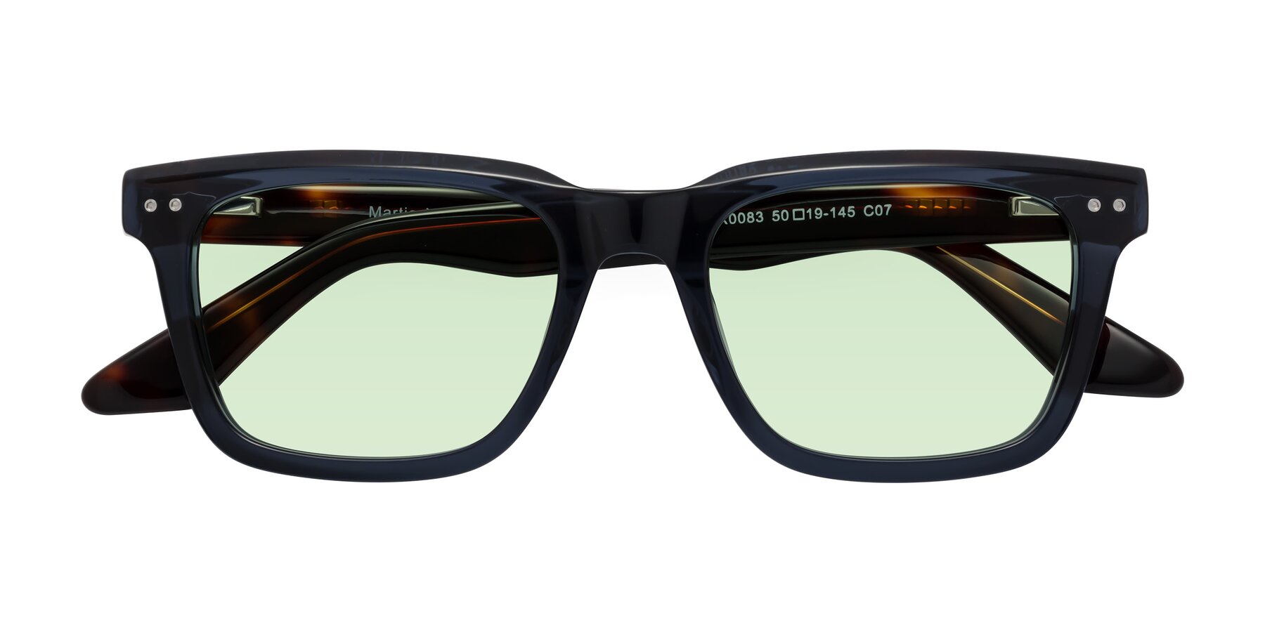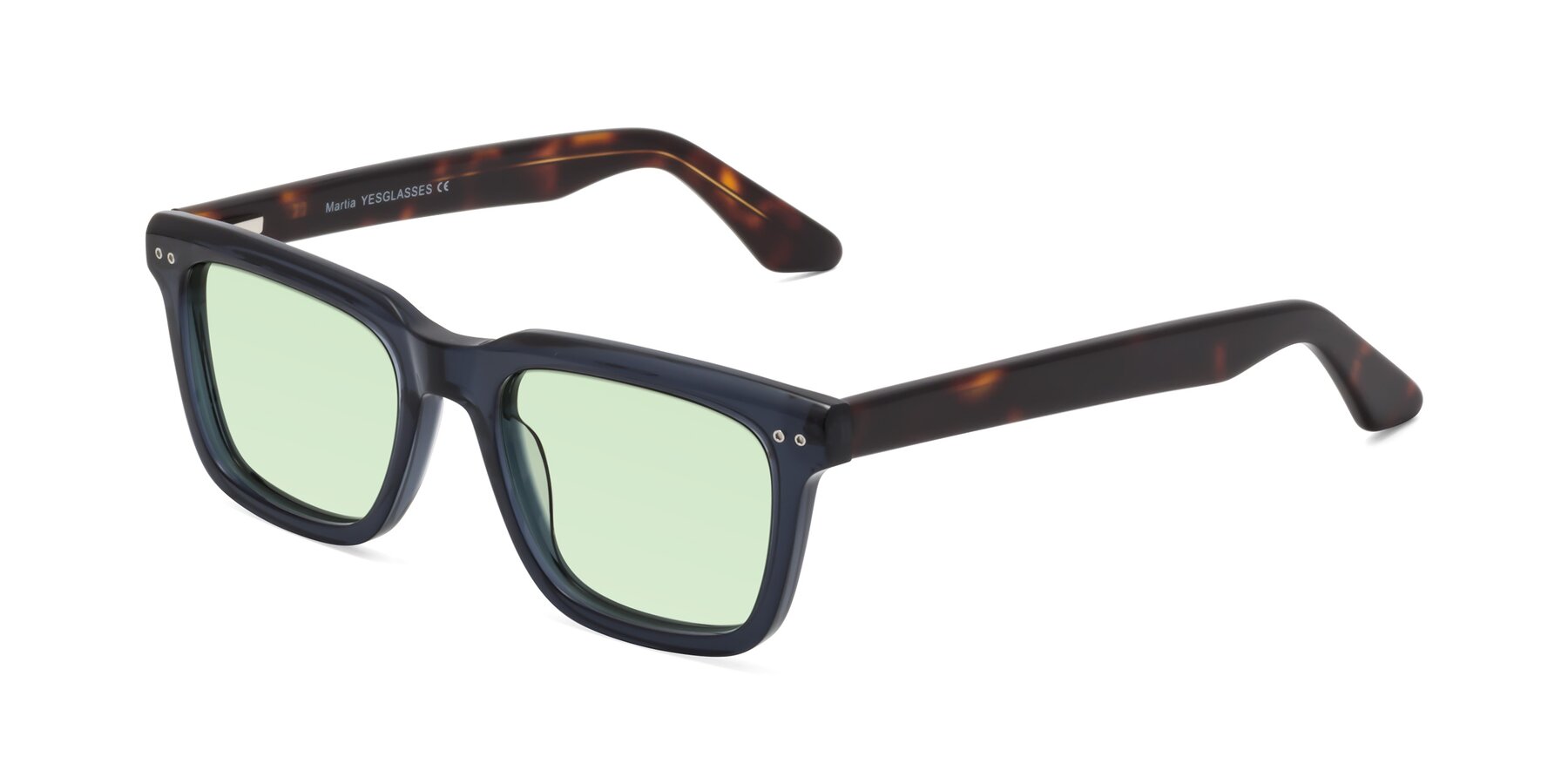 Deep Blue/Tortoise Classic Acetate Trapezoid Tinted Sunglasses with Light Green Sunwear Lenses