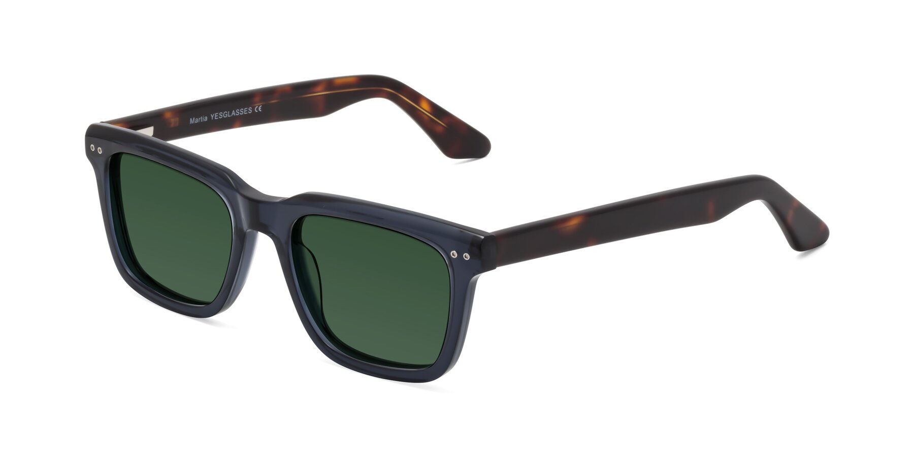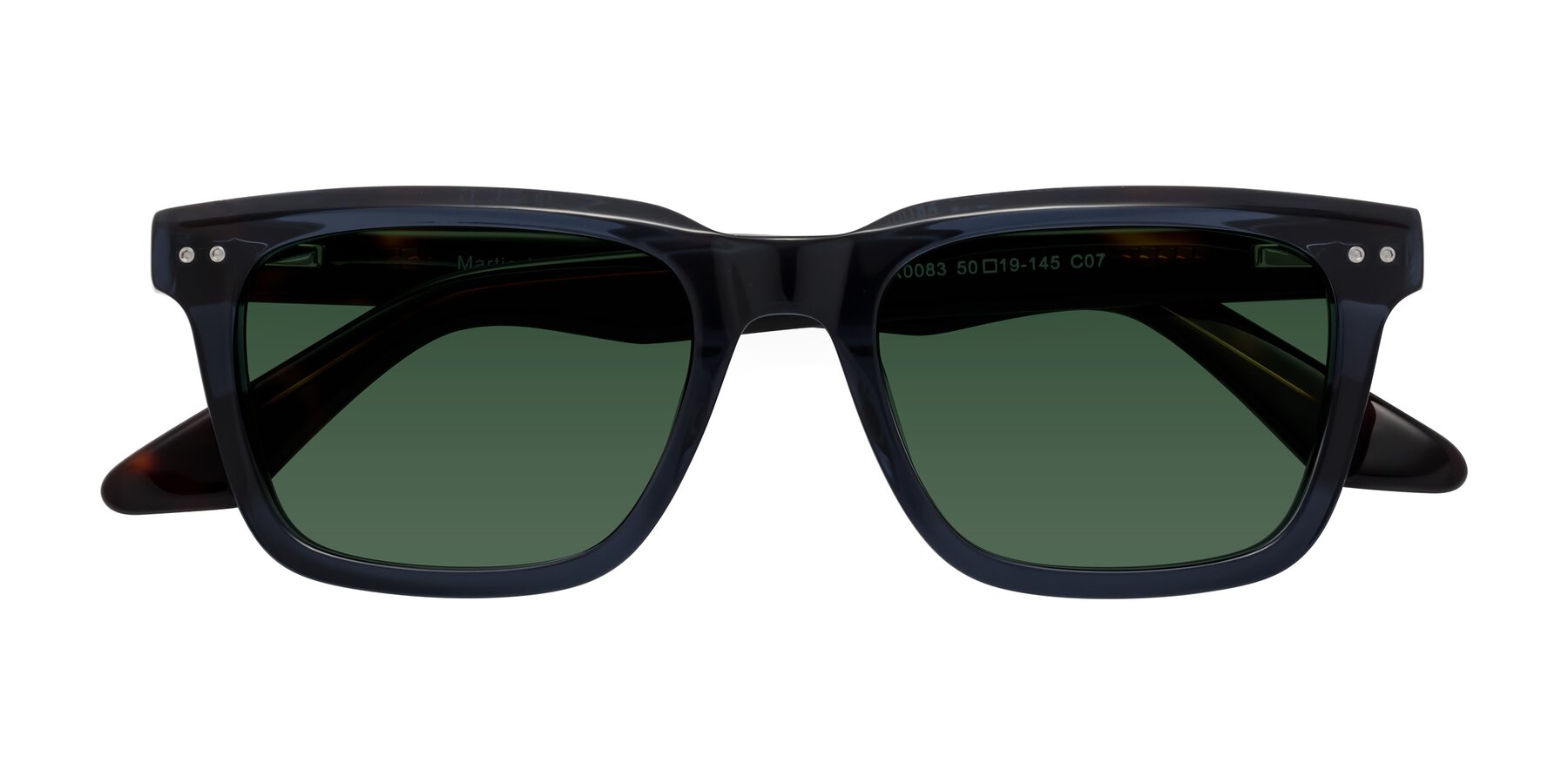 Deep Blue/Tortoise Classic Acetate Trapezoid Tinted Sunglasses with Green Sunwear Lenses