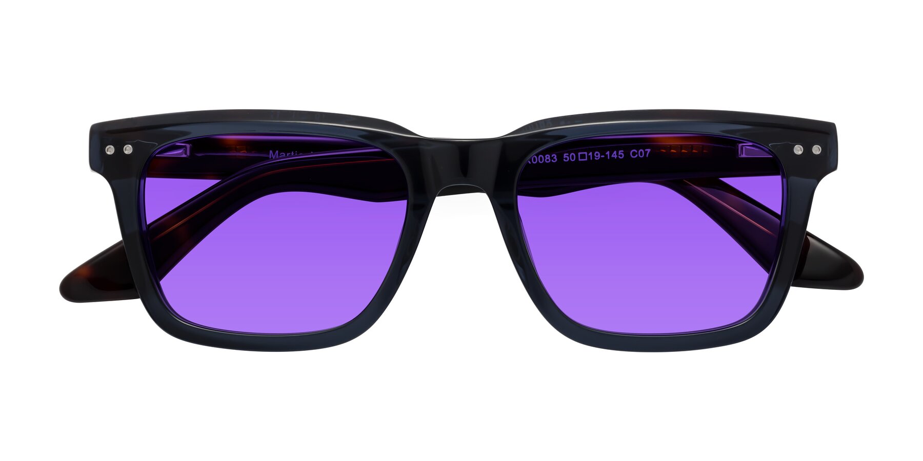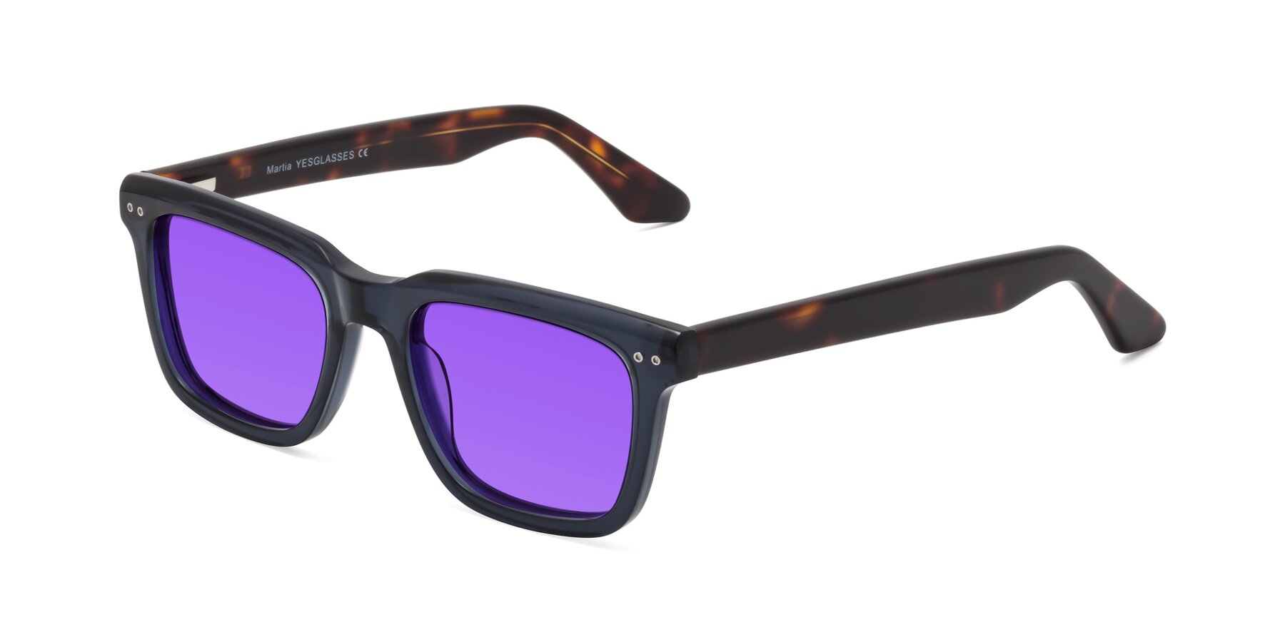 Deep Blue/Tortoise Classic Acetate Trapezoid Tinted Sunglasses with Purple Sunwear Lenses