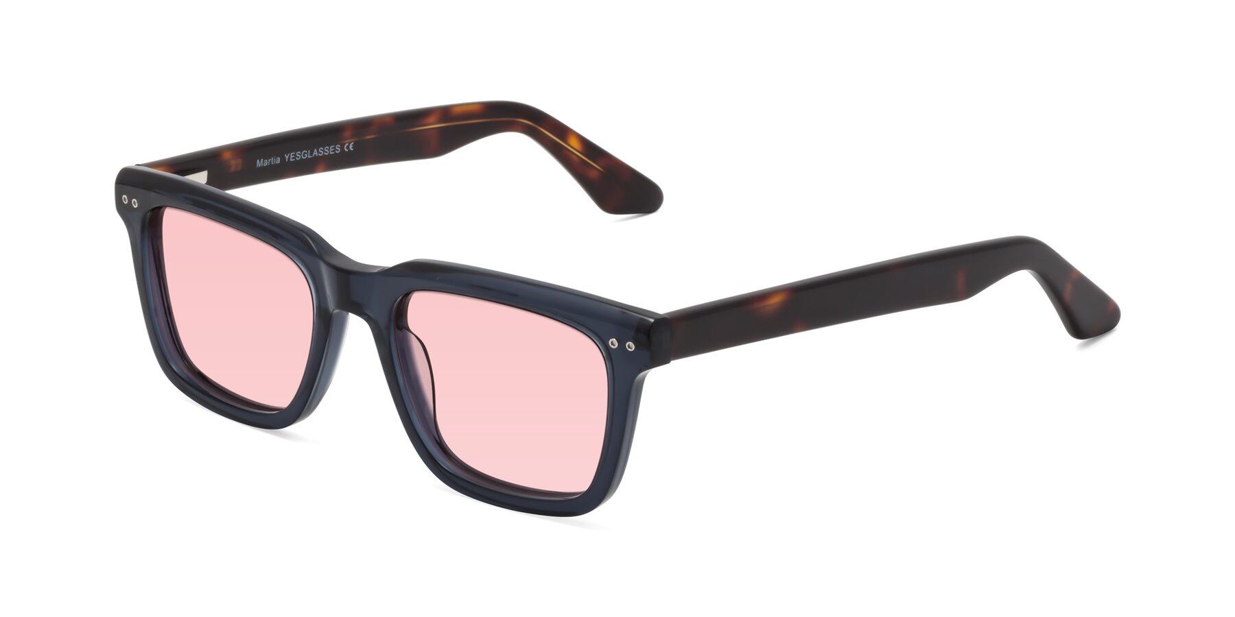Deep Blue/Tortoise Classic Acetate Trapezoid Tinted Sunglasses with Light Garnet Sunwear Lenses