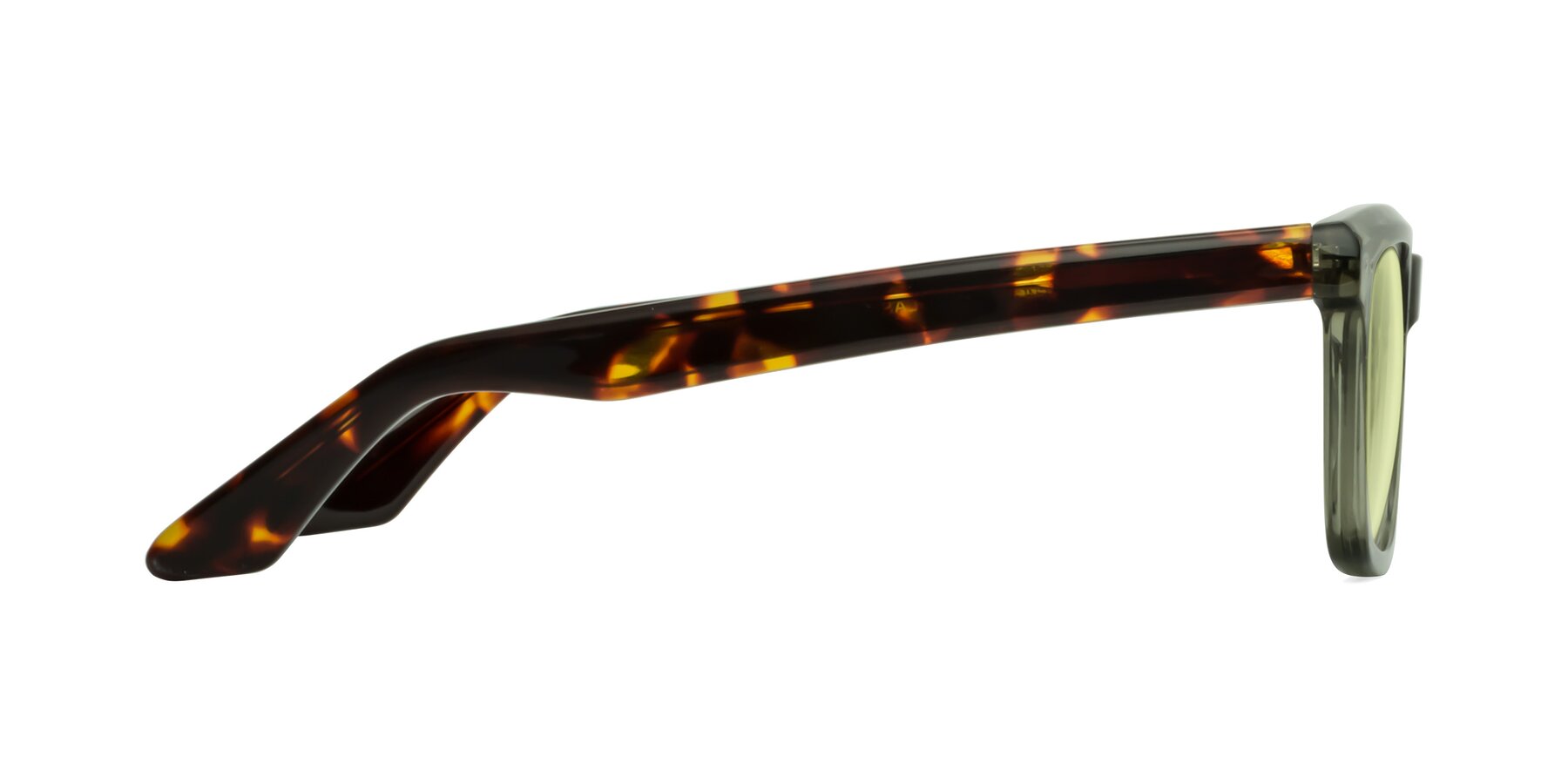 Transparent Green/Tortoise Classic Acetate Trapezoid Tinted Sunglasses with Light Yellow Sunwear Lenses