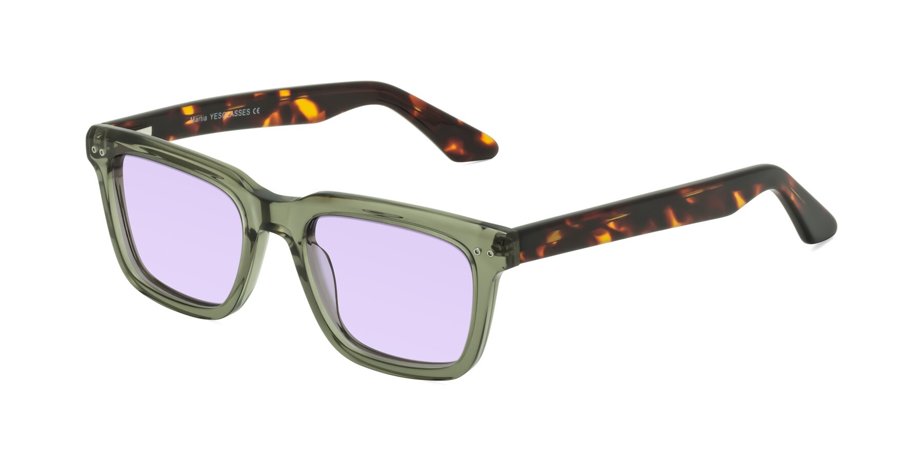 Transparent Green/Tortoise Classic Acetate Trapezoid Tinted Sunglasses with Light Purple Sunwear Lenses