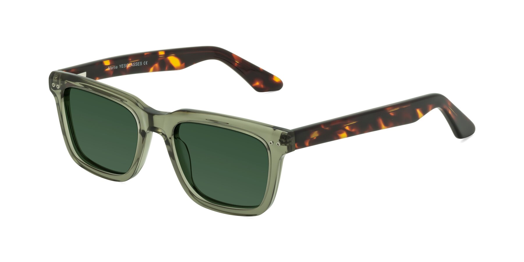 Transparent Green/Tortoise Classic Acetate Trapezoid Tinted Sunglasses with Green Sunwear Lenses