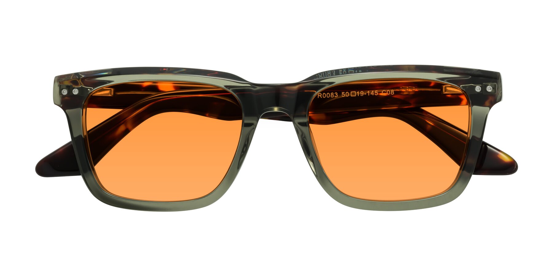 Transparent Green/Tortoise Classic Acetate Trapezoid Tinted Sunglasses with Orange Sunwear Lenses