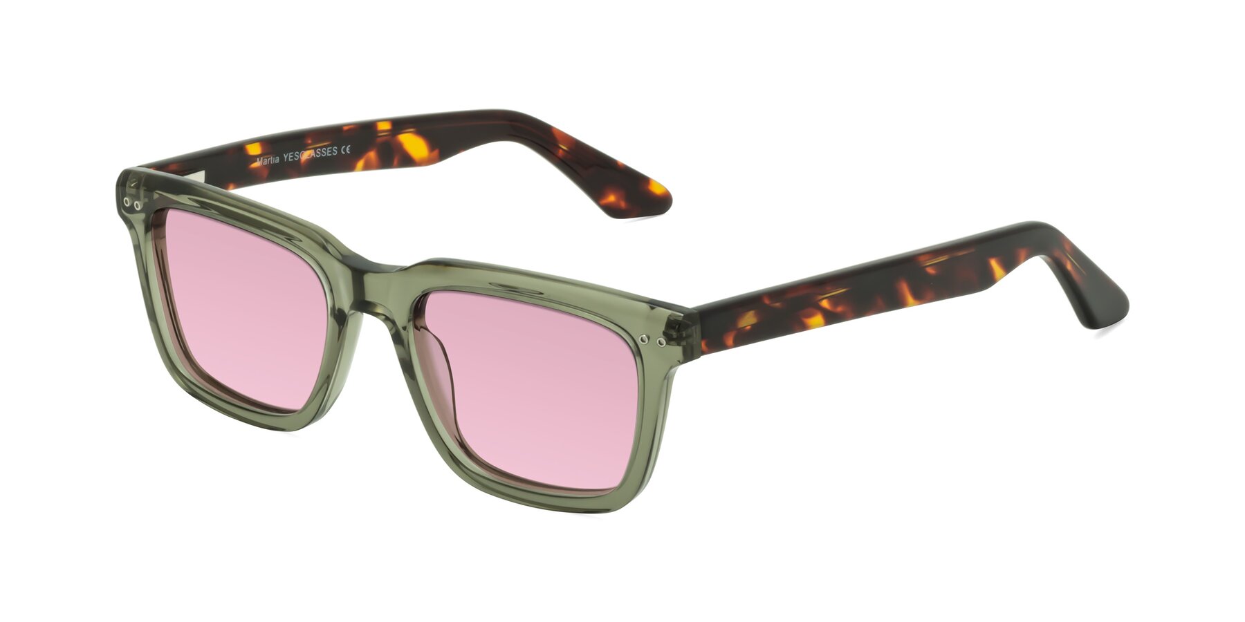 Transparent Green/Tortoise Classic Acetate Trapezoid Tinted Sunglasses with Light Wine Sunwear Lenses