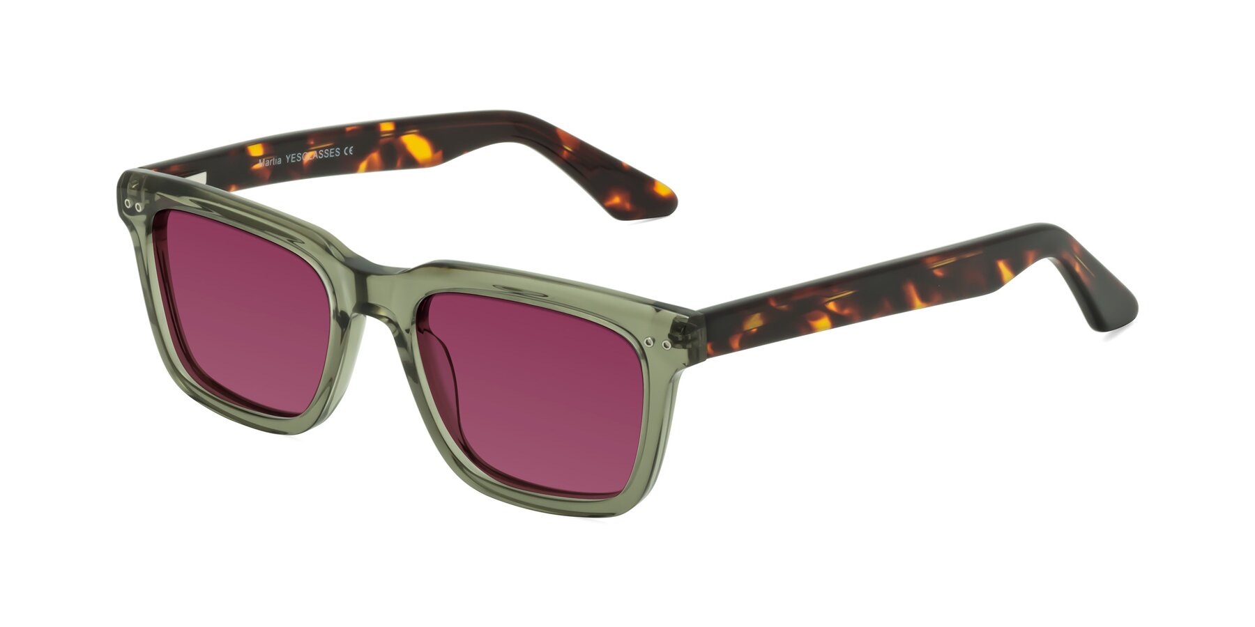 Transparent Green/Tortoise Classic Acetate Trapezoid Tinted Sunglasses with Wine Sunwear Lenses