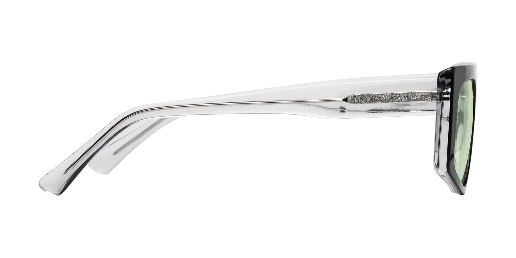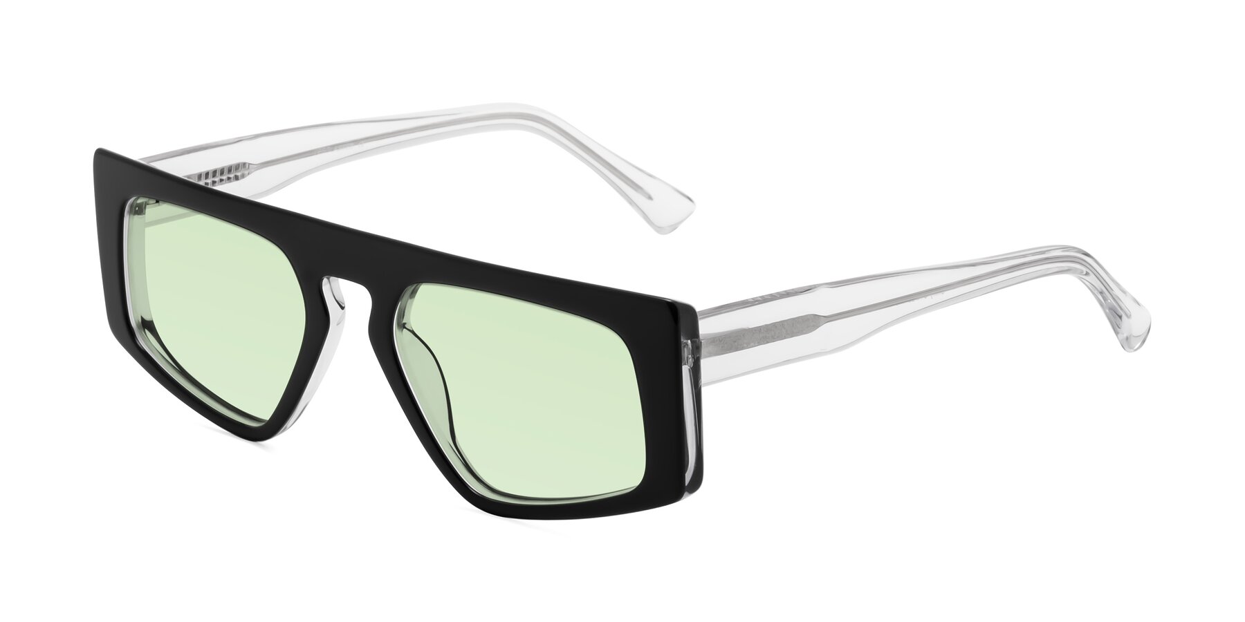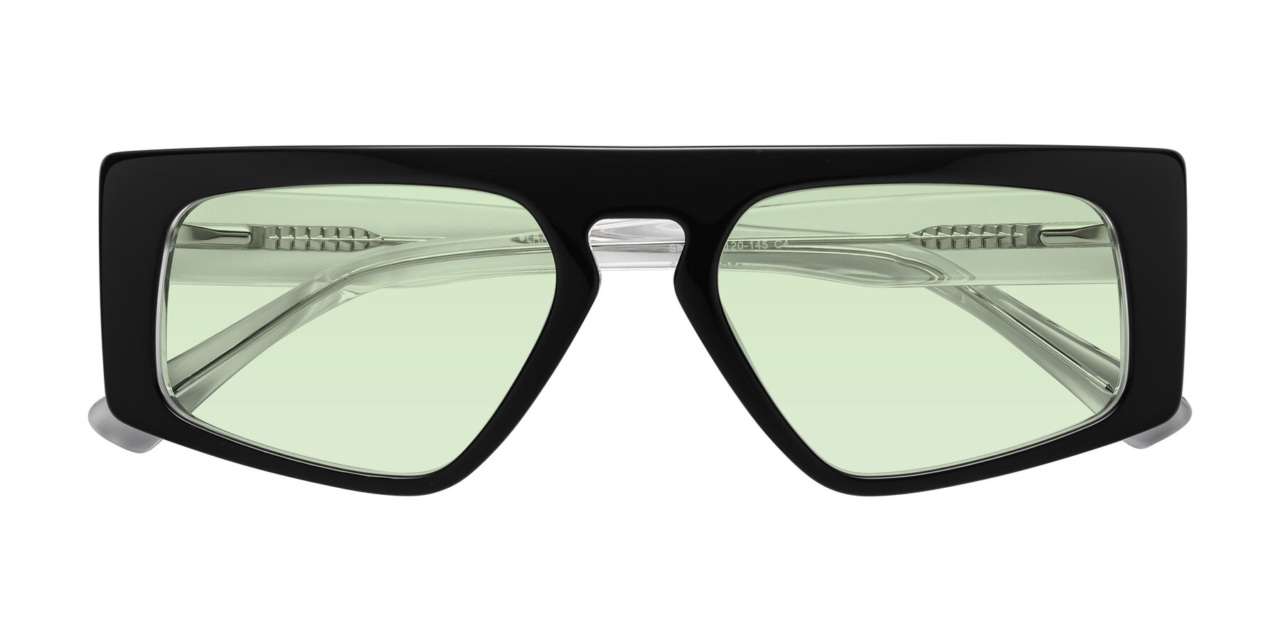 Black/Clear Keyhole Bridge Geek-Chic Geometric Tinted Sunglasses with Light Green Sunwear Lenses