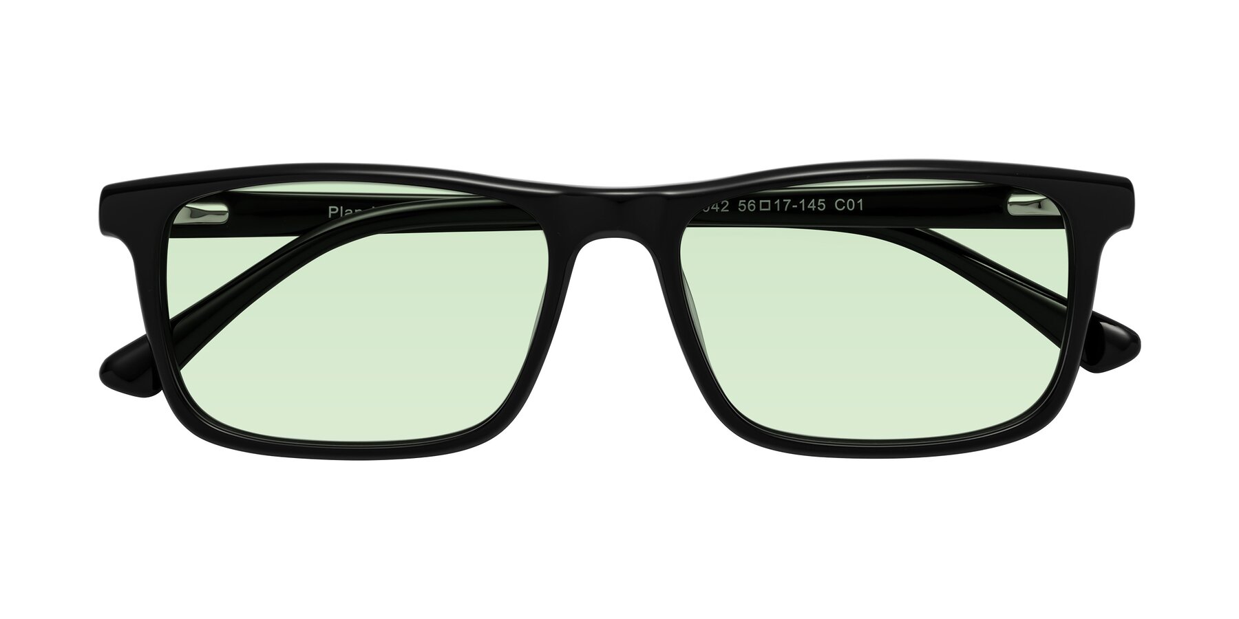Black Classic Acetate Rectangle Tinted Sunglasses with Light Green Sunwear Lenses