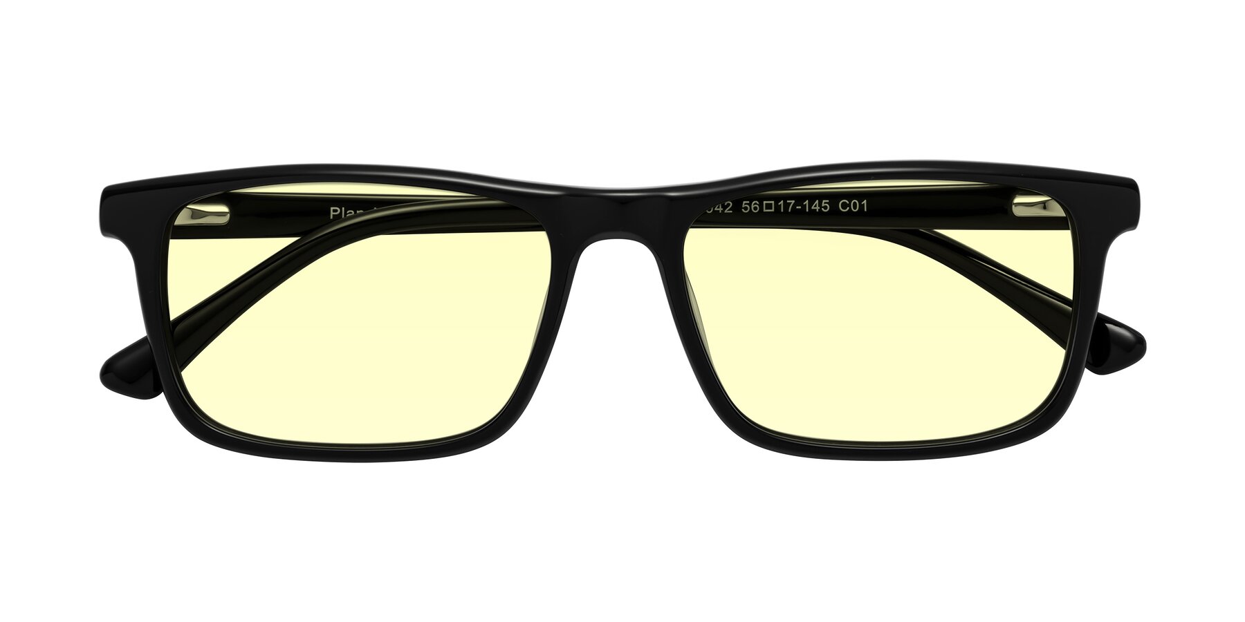 Black Classic Acetate Rectangle Tinted Sunglasses with Light Yellow Sunwear Lenses