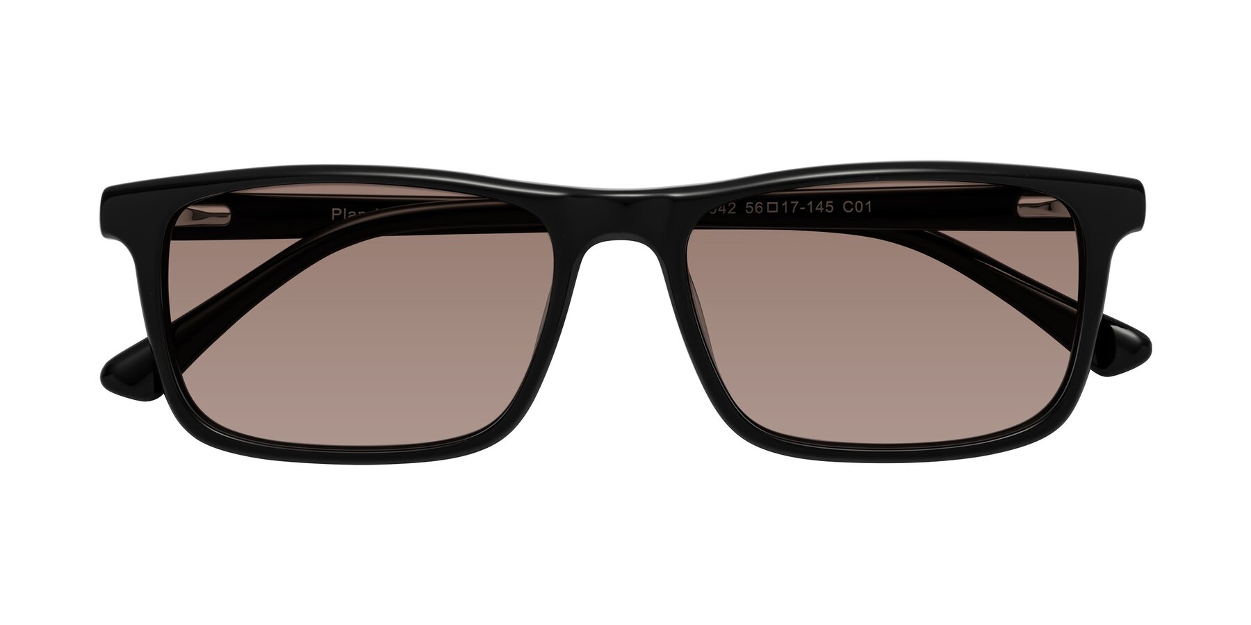 Black Classic Acetate Rectangle Tinted Sunglasses with Medium Brown Sunwear Lenses